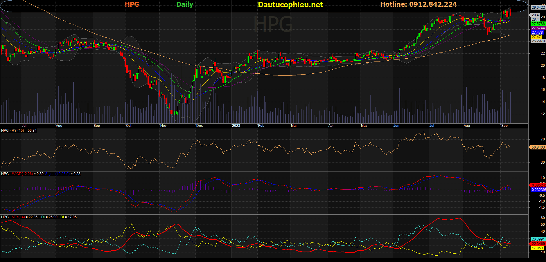 Đồ thị cổ phiếu HPG phiên giao dịch ngày 13/09/2023. Nguồn: AmiBroker