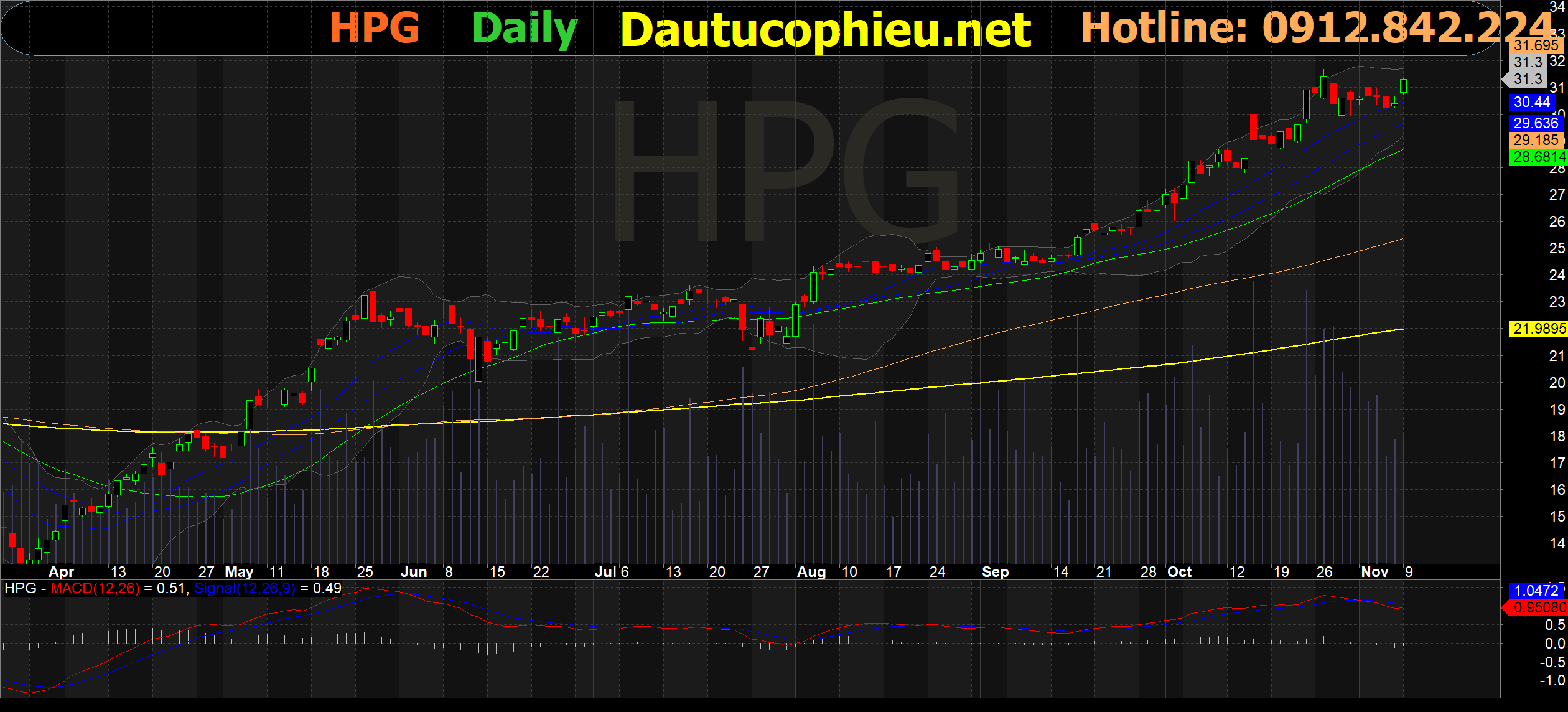 Đồ thị cổ phiếu HPG phiên giao dịch ngày 09/11/2020. Nguồn: AmiBroker
