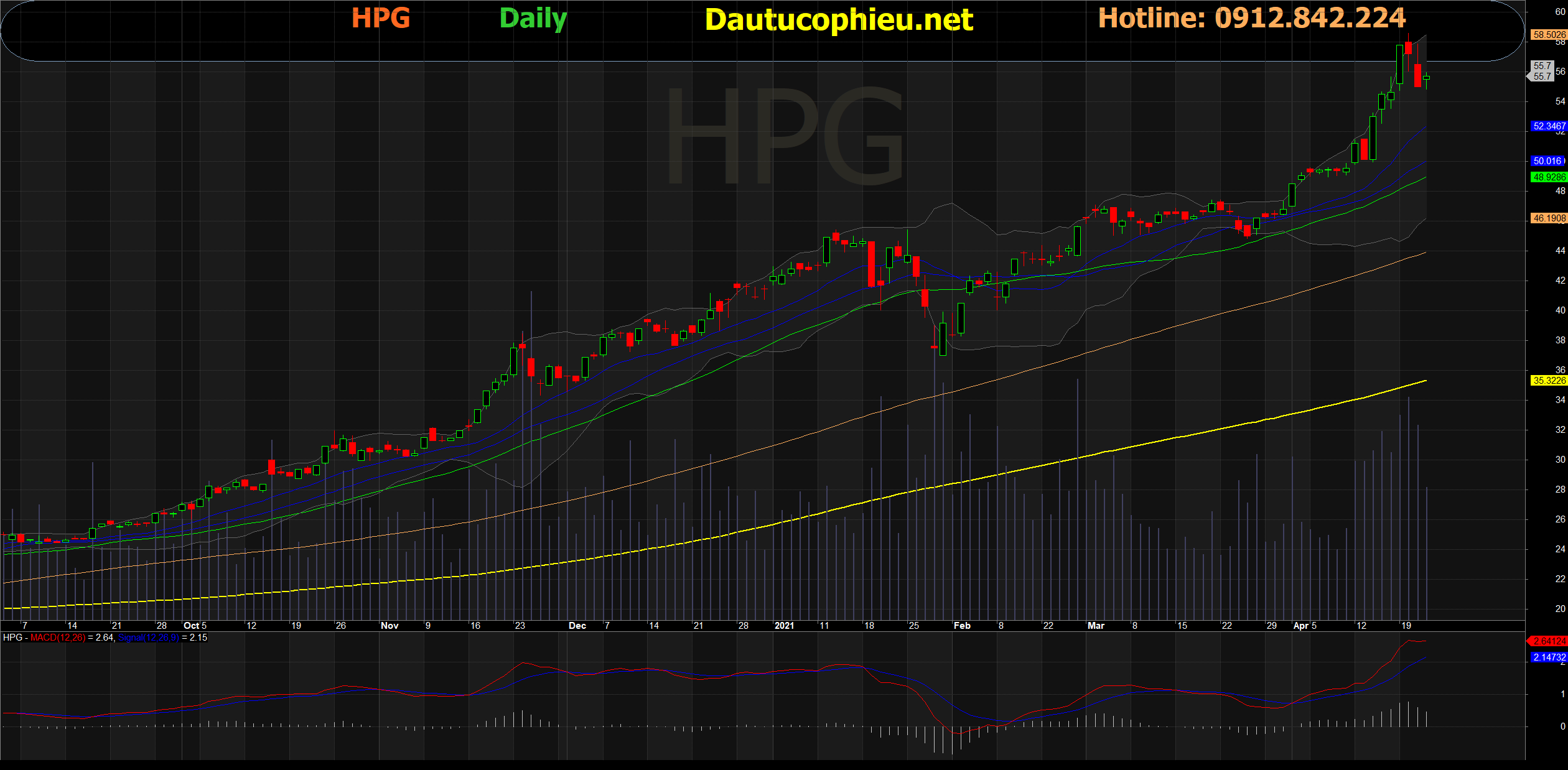 Đồ thị cổ phiếu HPG phiên giao dịch ngày 27/04/2021. Nguồn: AmiBroker