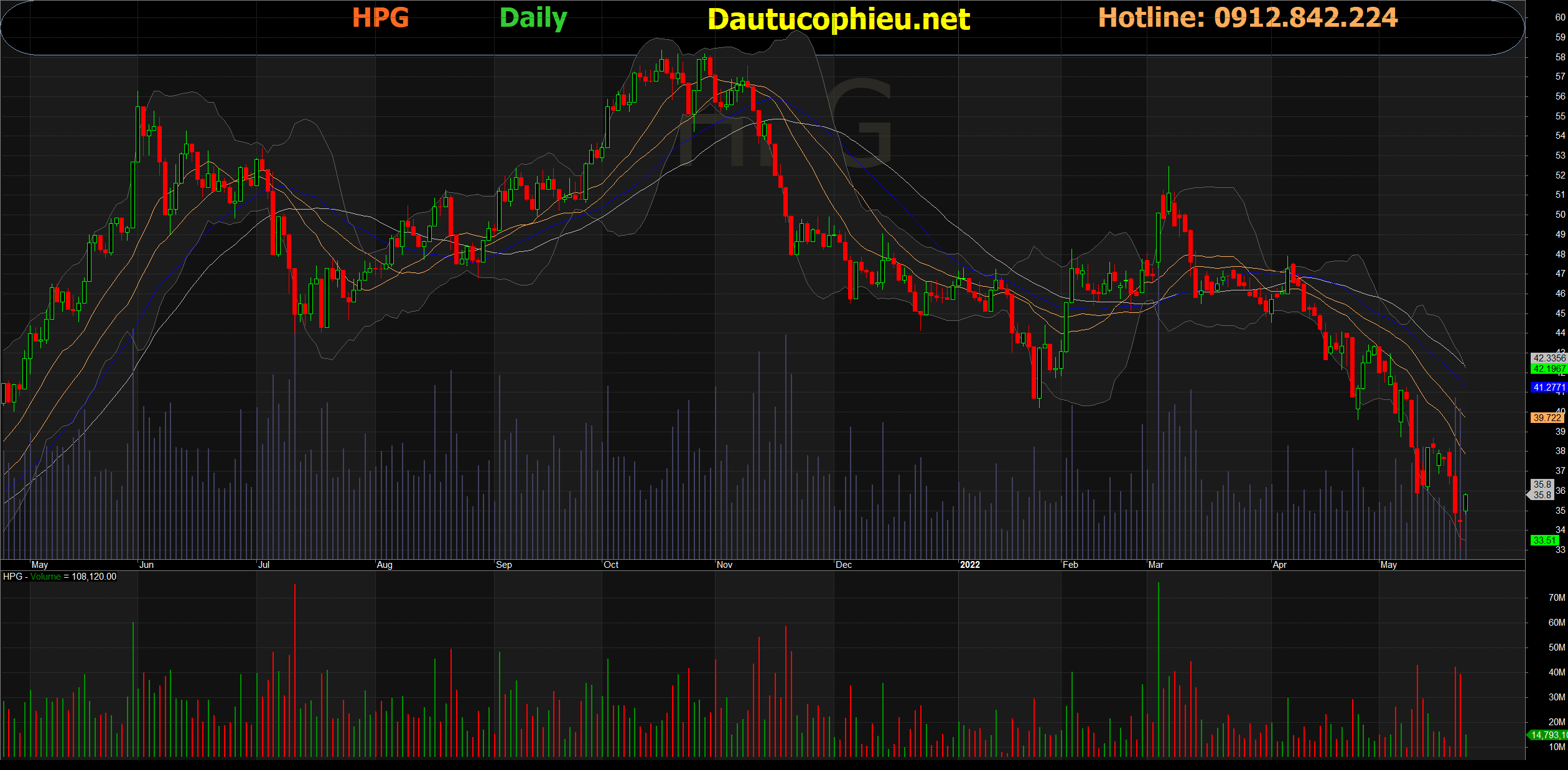 Đồ thị cổ phiếu HPG phiên giao dịch ngày 27/05/2022. Nguồn: AmiBroker