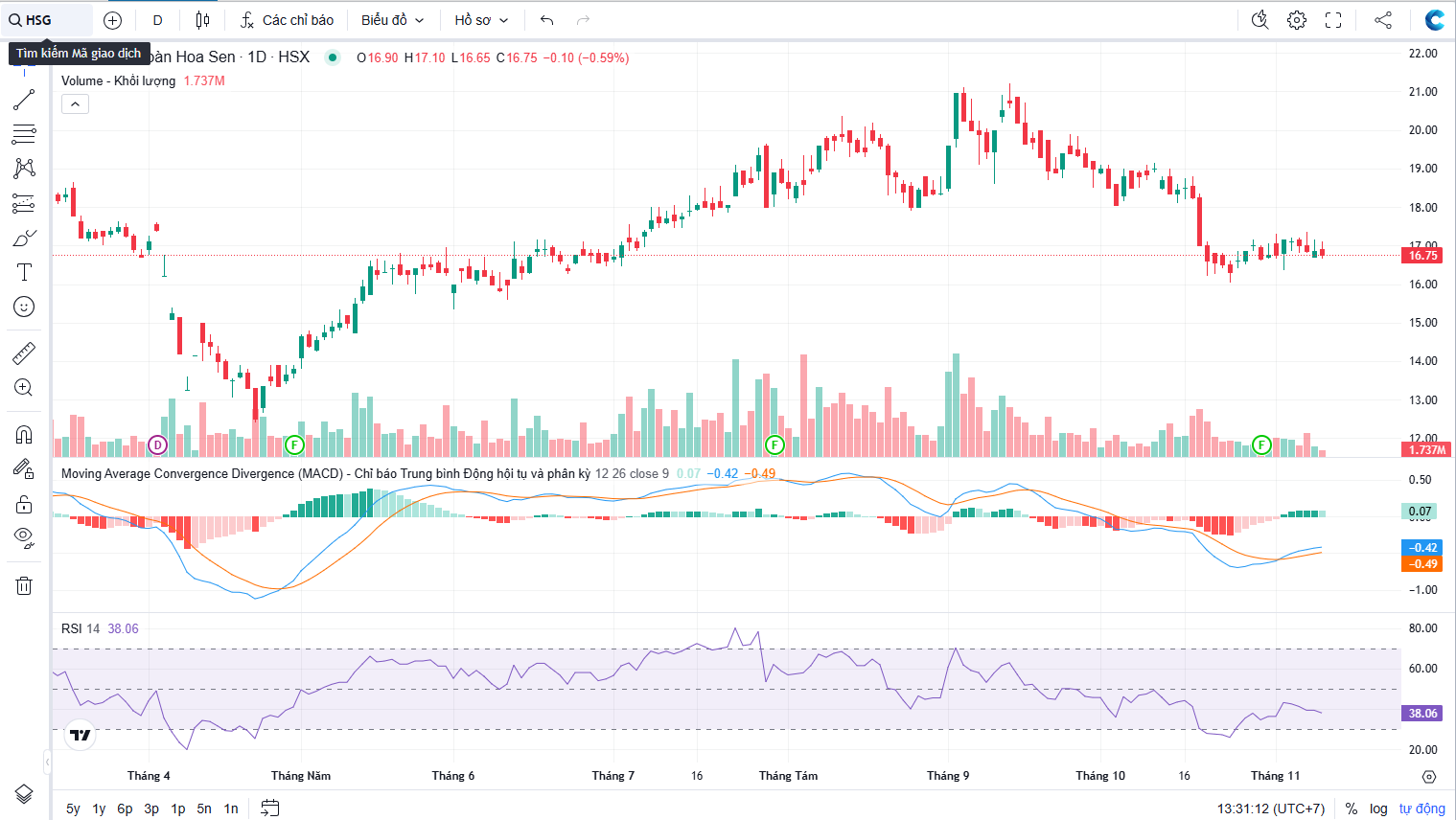 Đồ thị cổ phiếu HSG phiên giao dịch ngày 11/11/2025