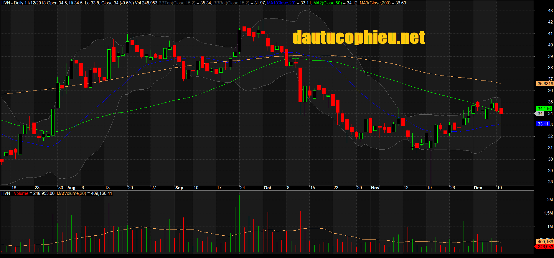 Đồ thị cổ phiếu HVN phiên giao dịch ngày 11/12/2018. Nguồn: AmiBroker