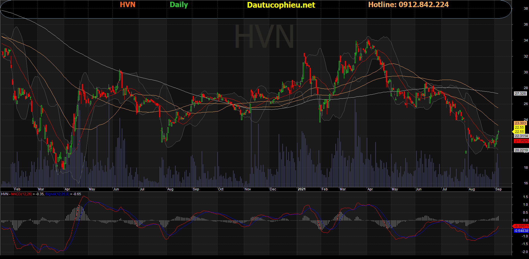 Đồ thị cổ phiếu HVN phiên giao dịch ngày 08/09/2021. Nguồn: AmiBroker