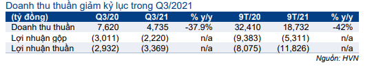 Bảng 2: KQKD Q3/2021, HVN