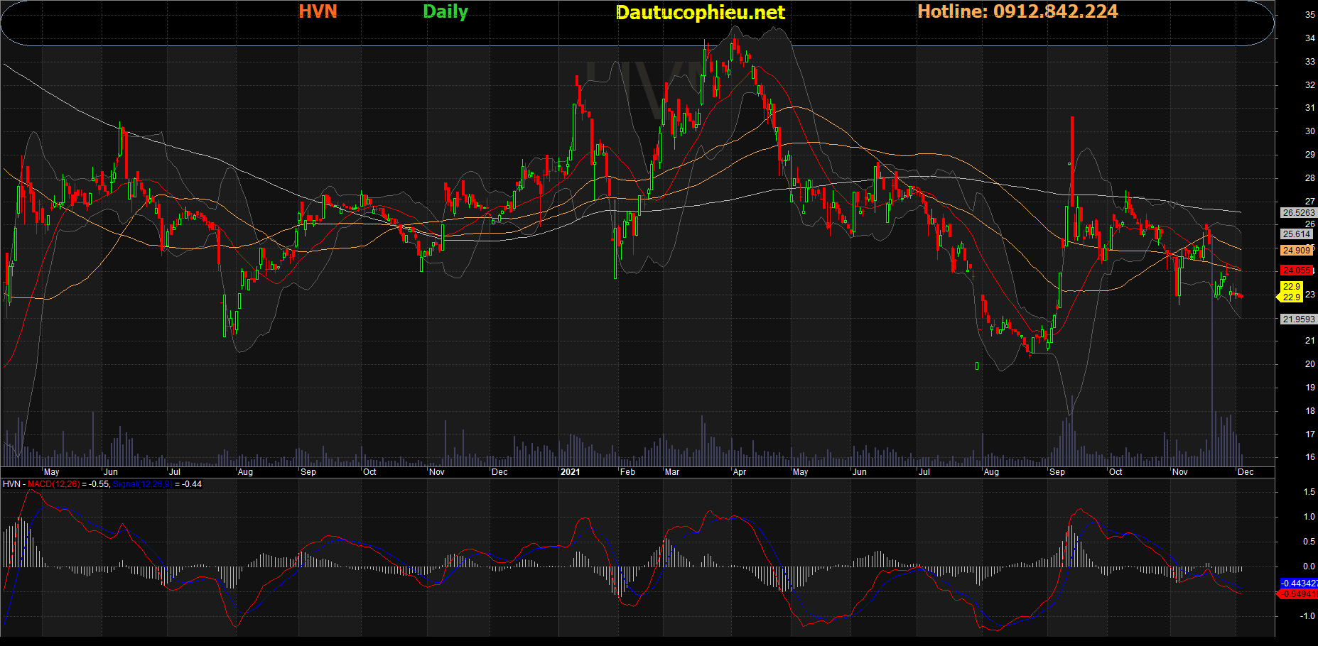 Đồ thị cổ phiếu HVN phiên giao dịch ngày 03/12/2021. Nguồn: AmiBroker
