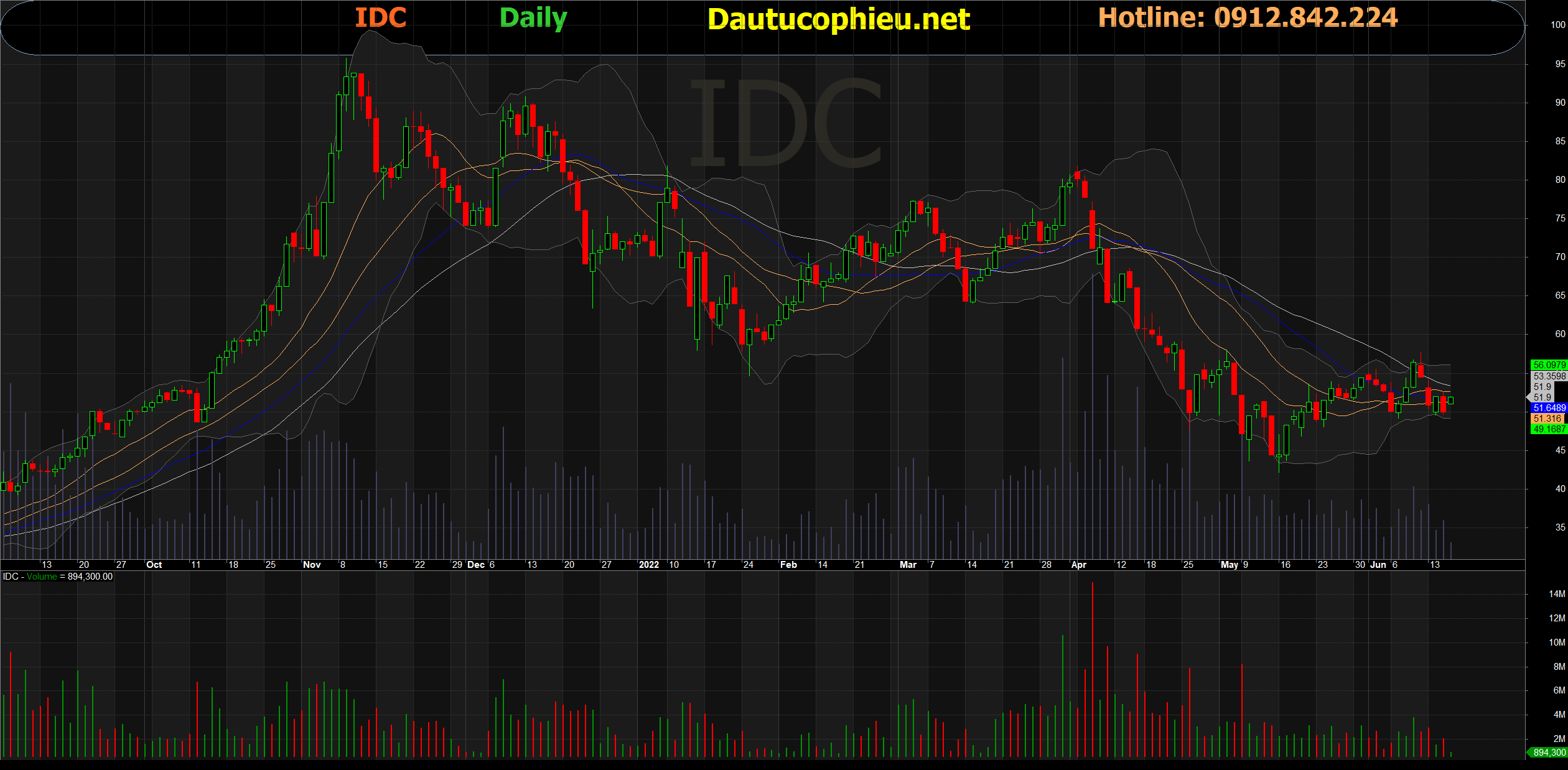 Đồ thị cổ phiếu IDC phiên giao dịch ngày 16/06/2022. Nguồn: AmiBroker