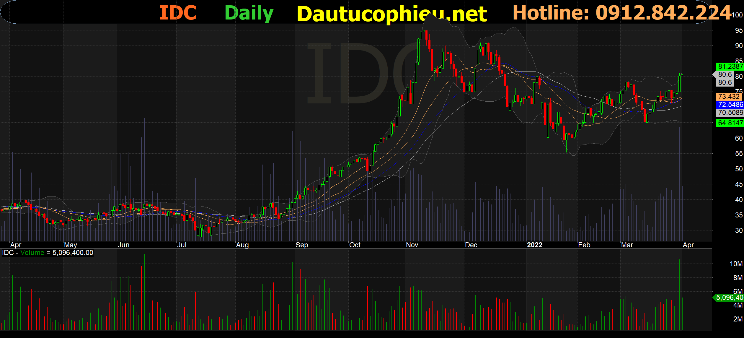 Đồ thị cổ phiếu IDC phiên giao dịch ngày 01/04/2022. Nguồn: AmiBroker