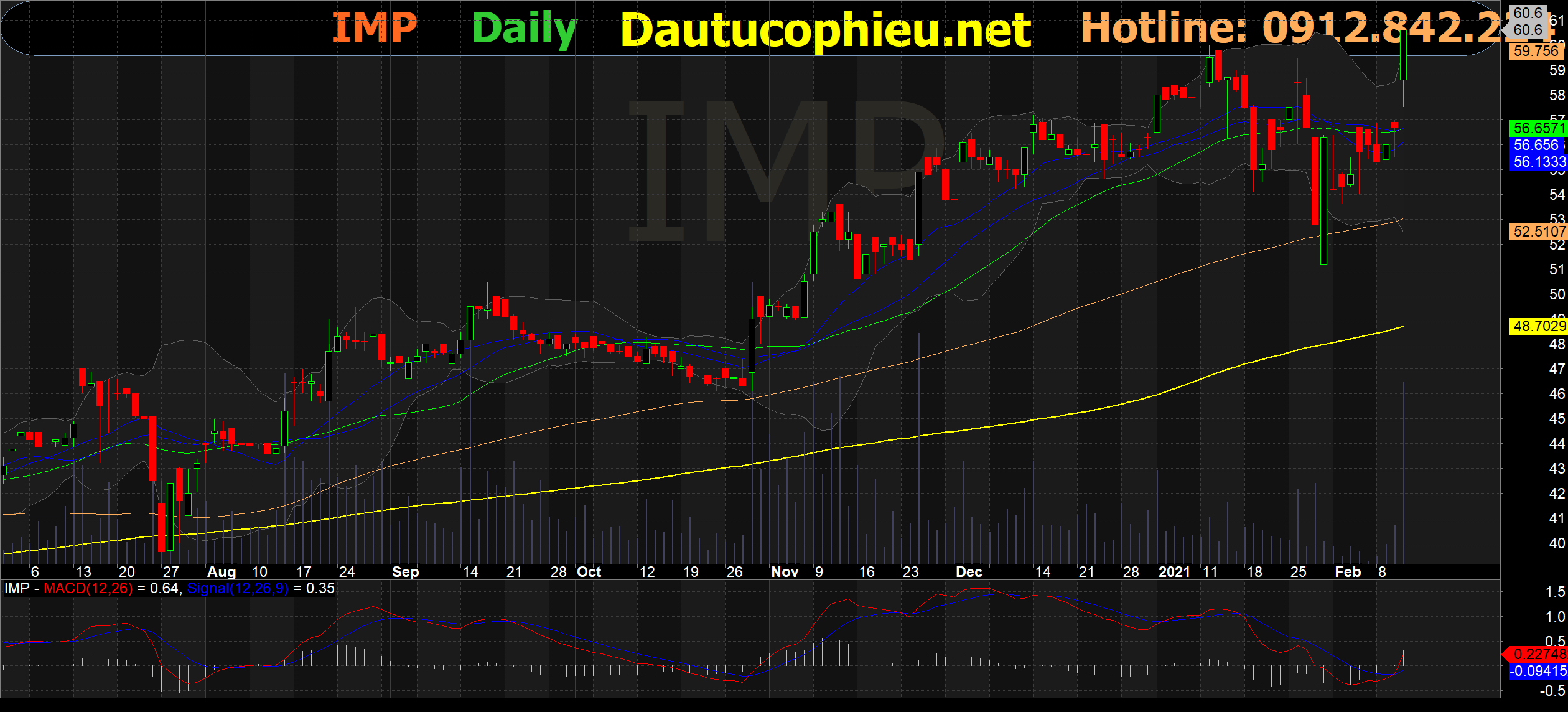 Đồ thị cổ phiếu IMP phiên giao dịch ngày 18/02/2021. Nguồn: AmiBroker
