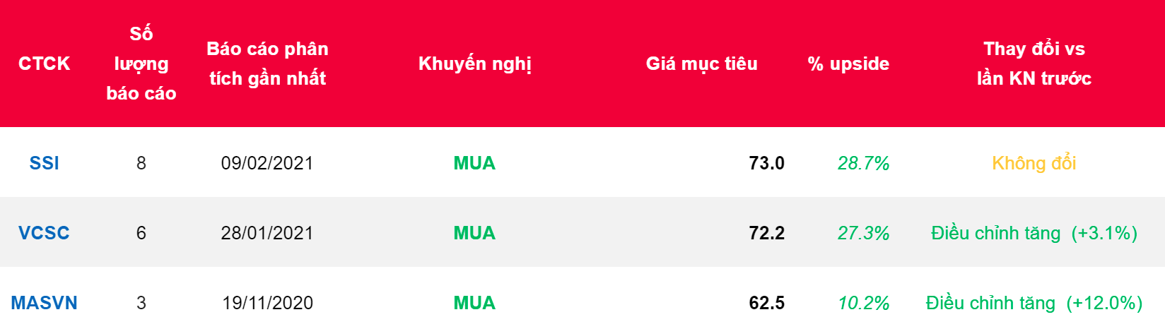- Chúng tôi khuyến nghị MUA đối với Cổ phiếu IMP với giá mục tiêu 73.000 đồng/ cổ phiếu, tăng 29% so với giá hiện tại vào ngày 17/2/2021. Chúng tôi nhận thấy lợi nhuận Q4/2020 của IMP có sự cải thiện mạnh so với quý trước và cùng kỳ, cùng với tiềm năng tăng trưởng đáng kể về doanh thu và lợi nhuận trong năm 2021 do (1) nền doanh thu thấp trong năm 2020, chịu ảnh hưởng từ đại dịch Covid-19 và (2) lợi nhuận năm 2021 cải thiện mạnh nhờ nâng cấp danh mục thuốc đấu thầu có giá trị cao hơn. Chúng tôi ước tính tổng doanh thu và LNST cốt lõi của IMP (không bao gồm dự phòng quỹ nghiên cứu phát triển) cho năm 2021 lần lượt đạt 1,9 nghìn tỷ đồng (+35% YoY) và 296 tỷ đồng (+41% YoY).