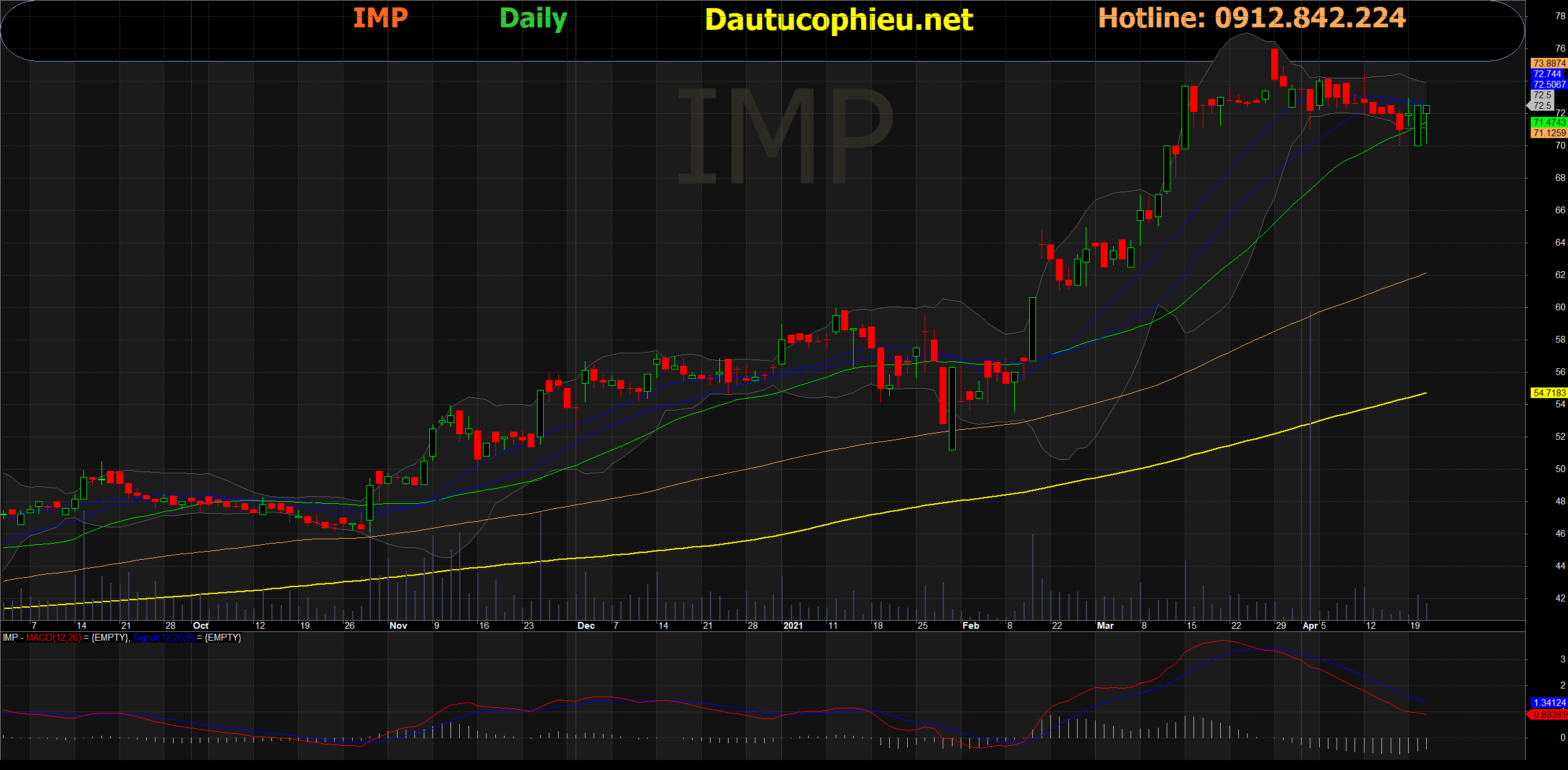 Đồ thị cổ phiếu IMP phiên giao dịch ngày 22/04/2021. Nguồn: AmiBroker