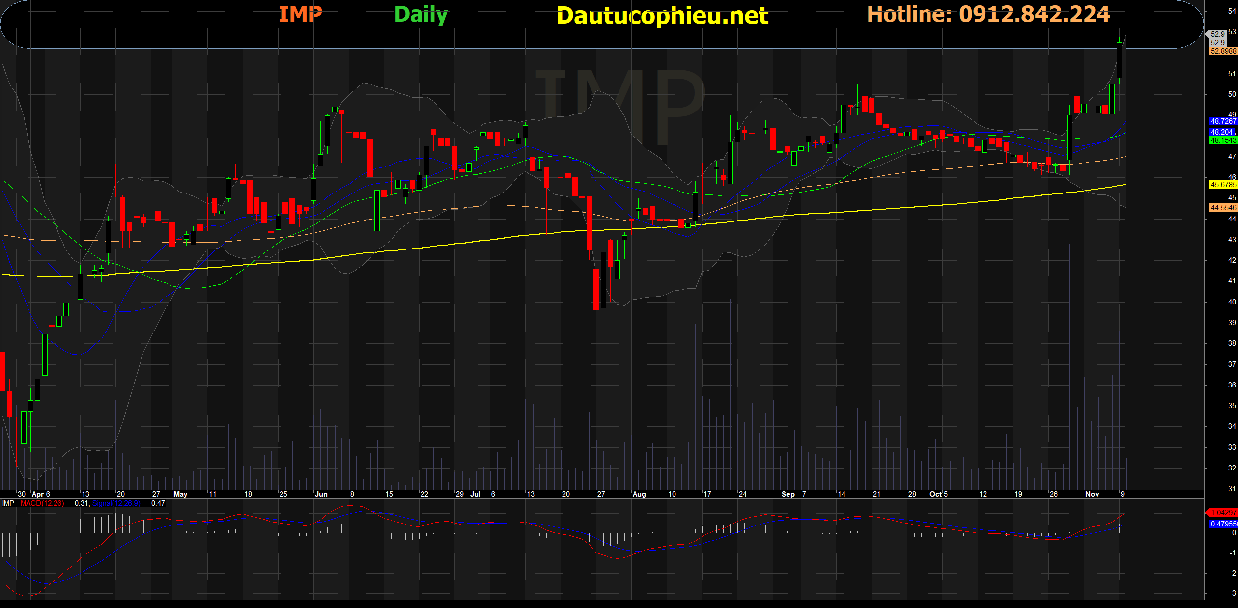 Đồ thị cổ phiếu IMP phiên giao dịch ngày 10/11/2020. Nguồn: AmiBroker