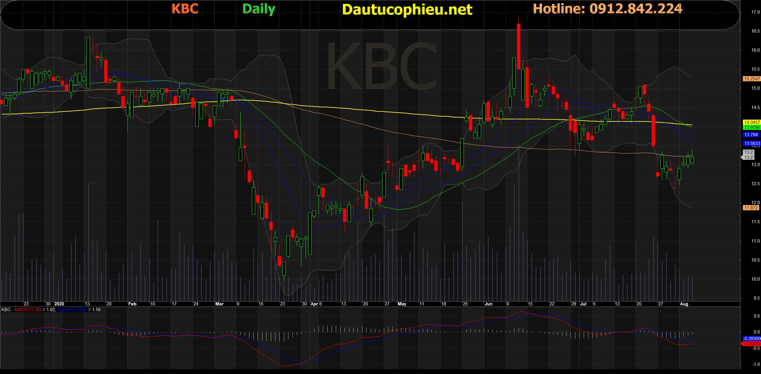Đồ thị cổ phiếu KBC phiên giao dịch ngày 07/08/2020. Nguồn: AmiBroker