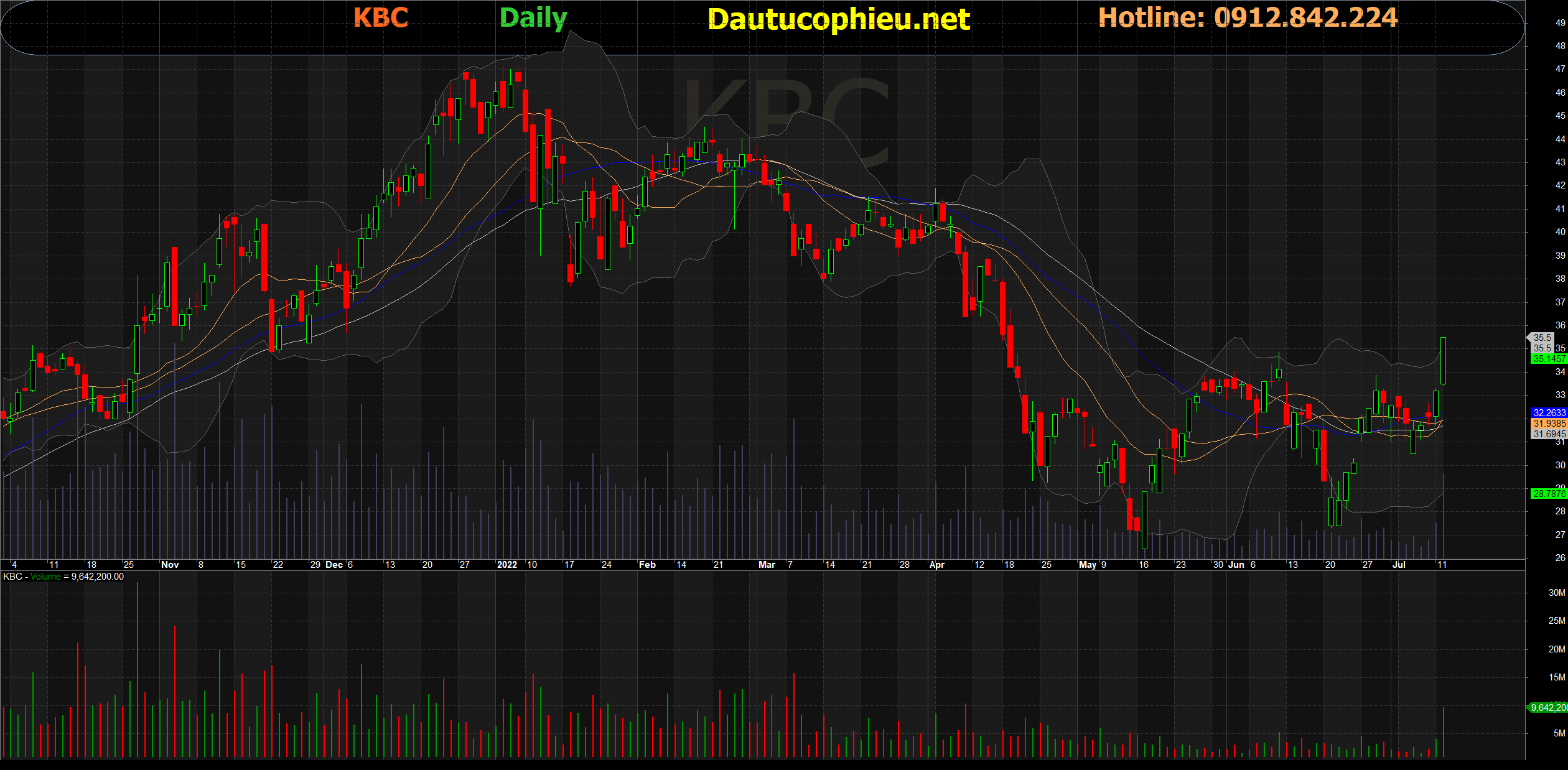 Đồ thị cổ phiếu KBC phiên giao dịch ngày 12/07/2022. Nguồn: AmiBroker