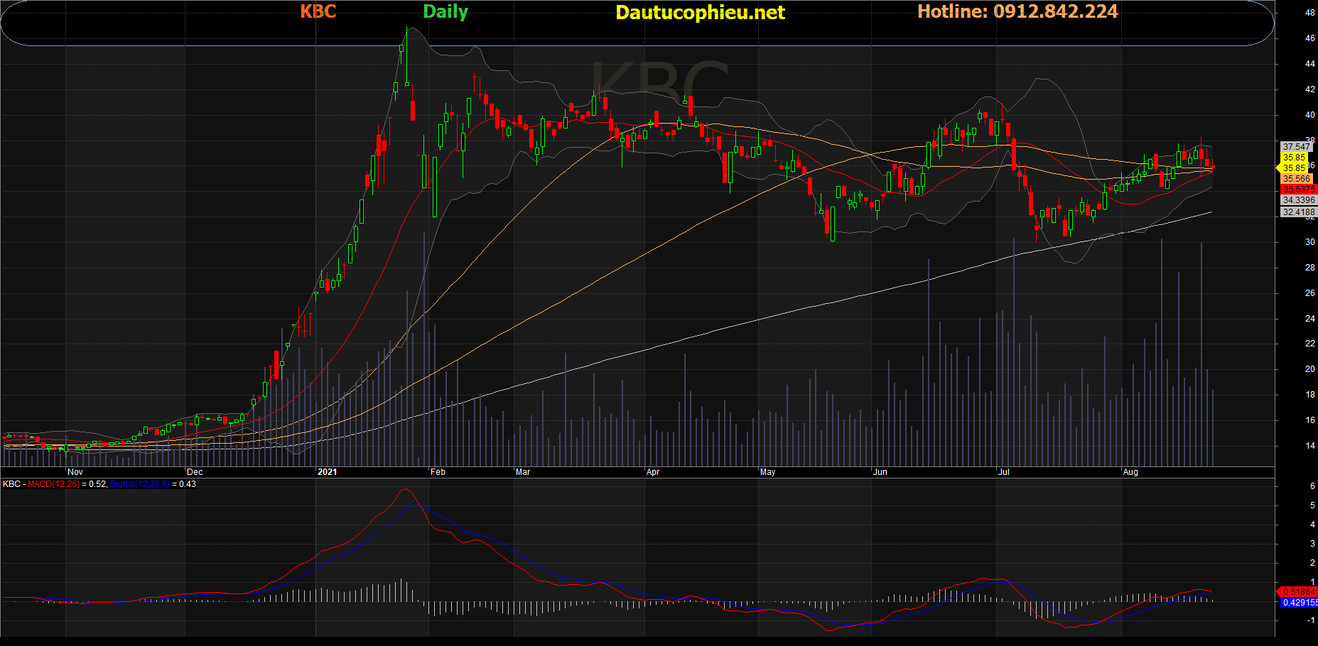 Đồ thị cổ phiếu KBC phiên giao dịch ngày 24/08/2021. Nguồn: AmiBroker