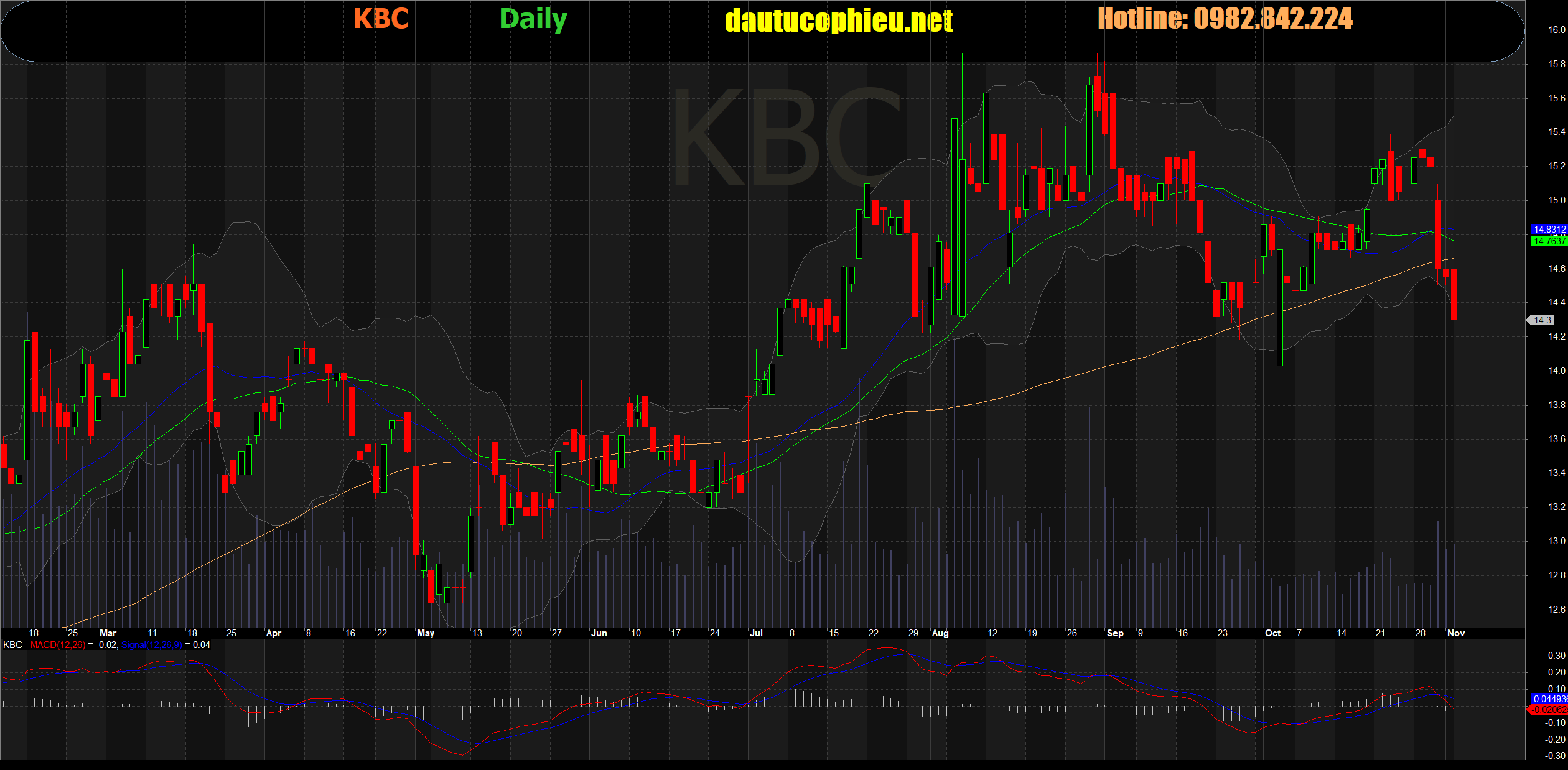 Đồ thị cổ phiếu KBC phiên giao dịch ngày 04/11/2019. Nguồn: AmiBroker.