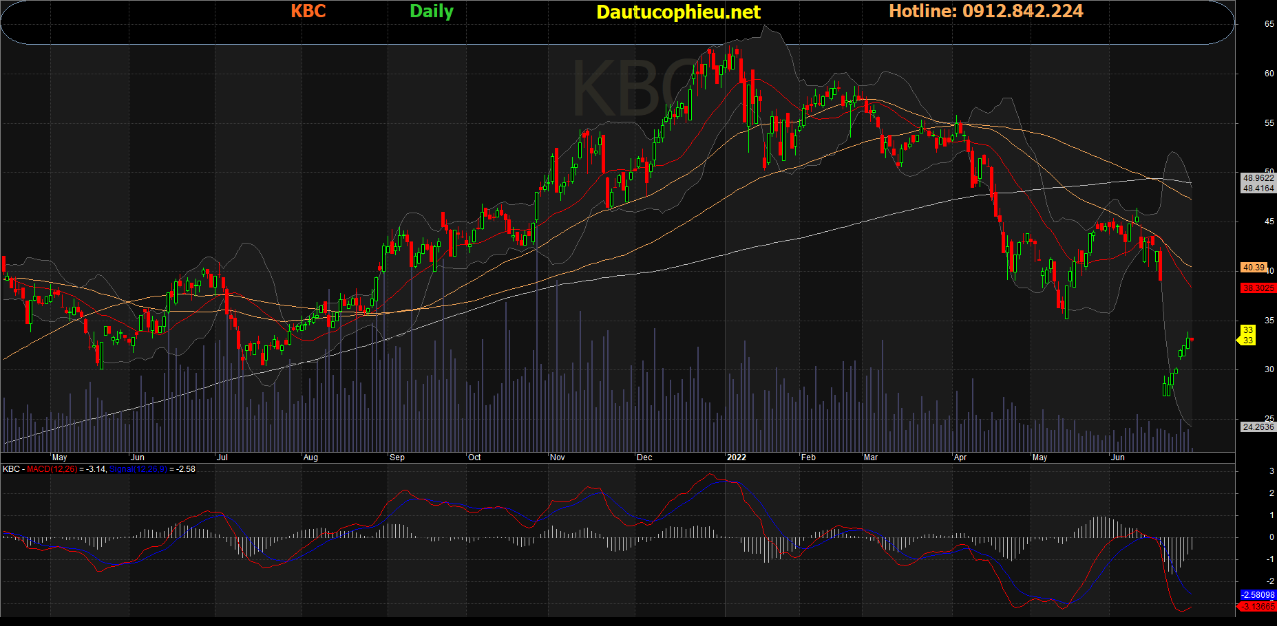 Đồ thị cổ phiếu KBC phiên giao dịch ngày 30/06/2022. Nguồn: AmiBroker