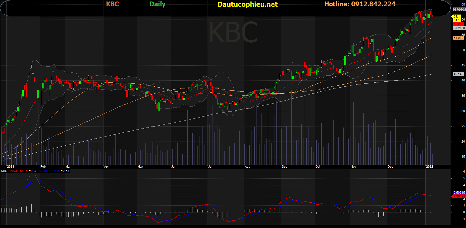 Đồ thị cổ phiếu KBC phiên giao dịch ngày 10/01/2022. Nguồn: AmiBroker