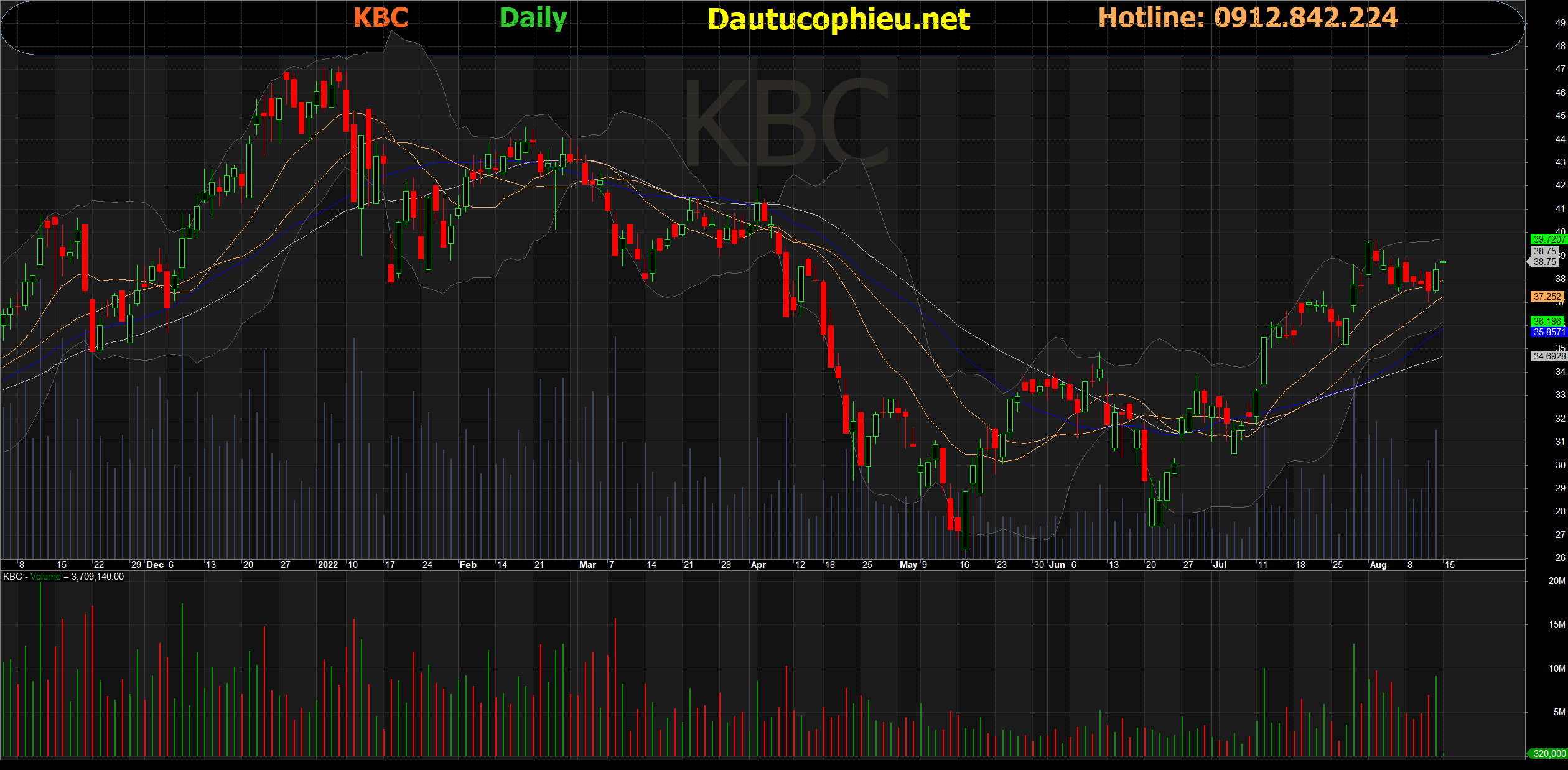 Đồ thị cổ phiếu KBC phiên giao dịch ngày 15/08/2022. Nguồn: AmiBroker