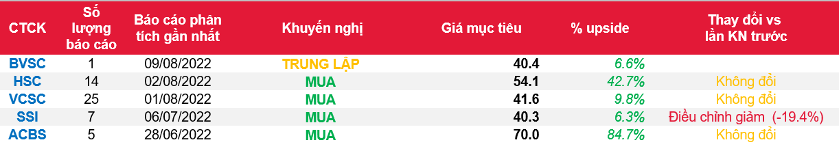 - Căn cứ kết quả kinh doanh trong 1H các mảng kinh doanh chính là cho thuê hạ tầng KCN và KDT. BVSC cho rằng hoạt động kiểm soát vốn tín dụng có tác động đến tiến độ thanh toán khách hàng lớn. Do đó, khả năng hoàn thành kế hoạch doanh thu của KBC sẽ giảm so với dự tính đầu năm. BVSC dự báo doanh thu và lợi nhuận của KBC năm 2022 lần lượt đạt 3.856,6 tỷ đồng (-9,2% yoy) và 3.387,5 tỷ đồng (+260,4% yoy).