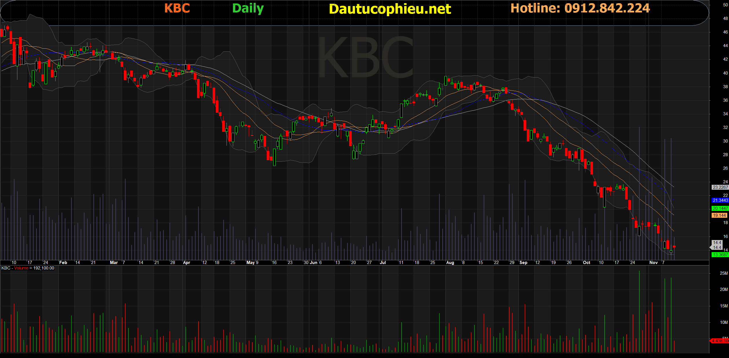 Đồ thị cổ phiếu KBC phiên giao dịch ngày 11/11/2022. Nguồn: AmiBroker