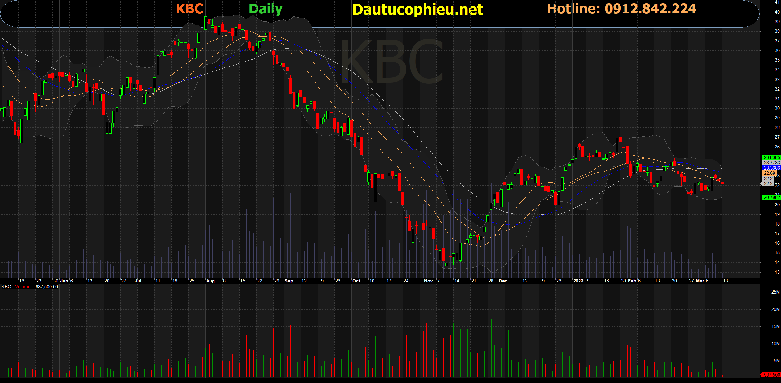Đồ thị cổ phiếu KBC phiên giao dịch ngày 13/03/2023. Nguồn: AmiBroker