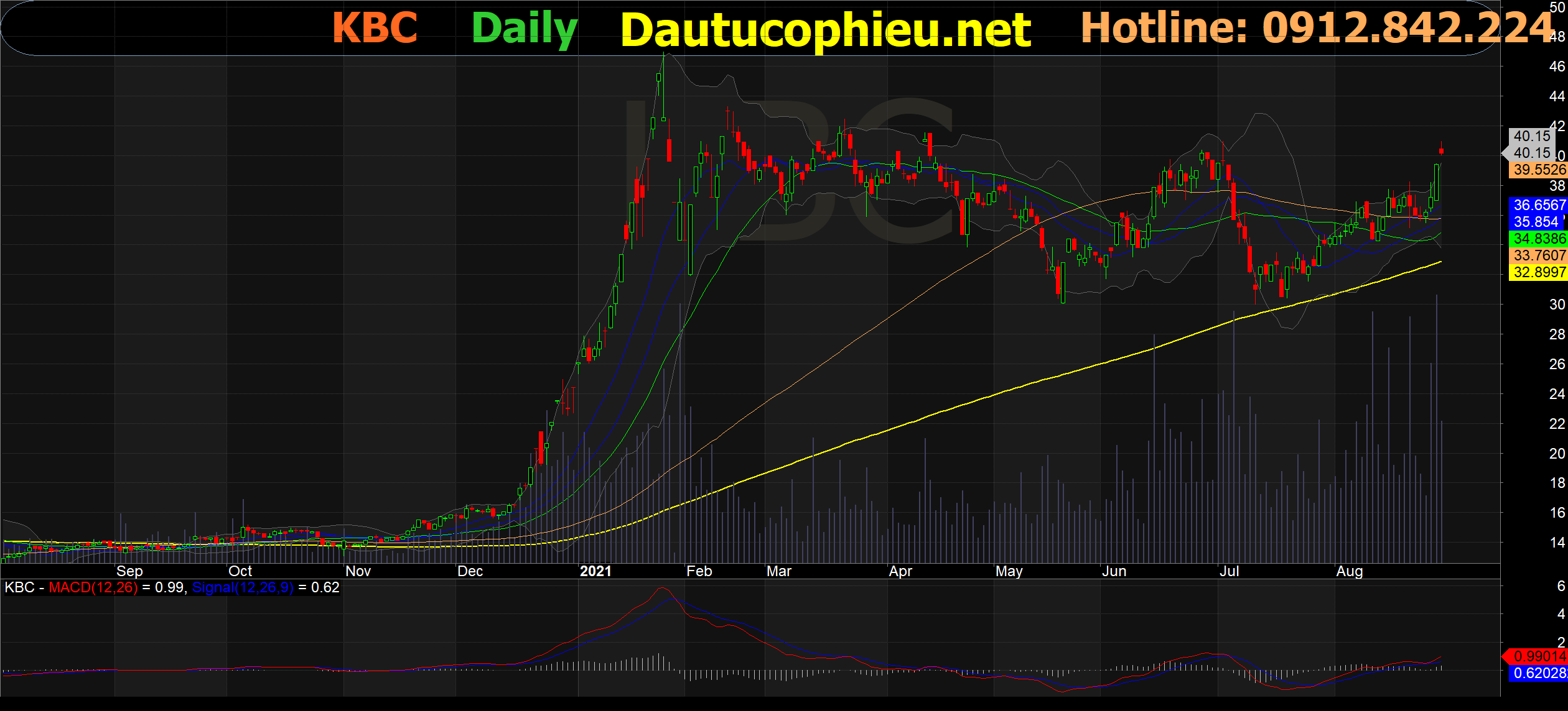 Đồ thị cổ phiếu KBC phiên giao dịch ngày 30/08/2021. Nguồn: AmiBroker