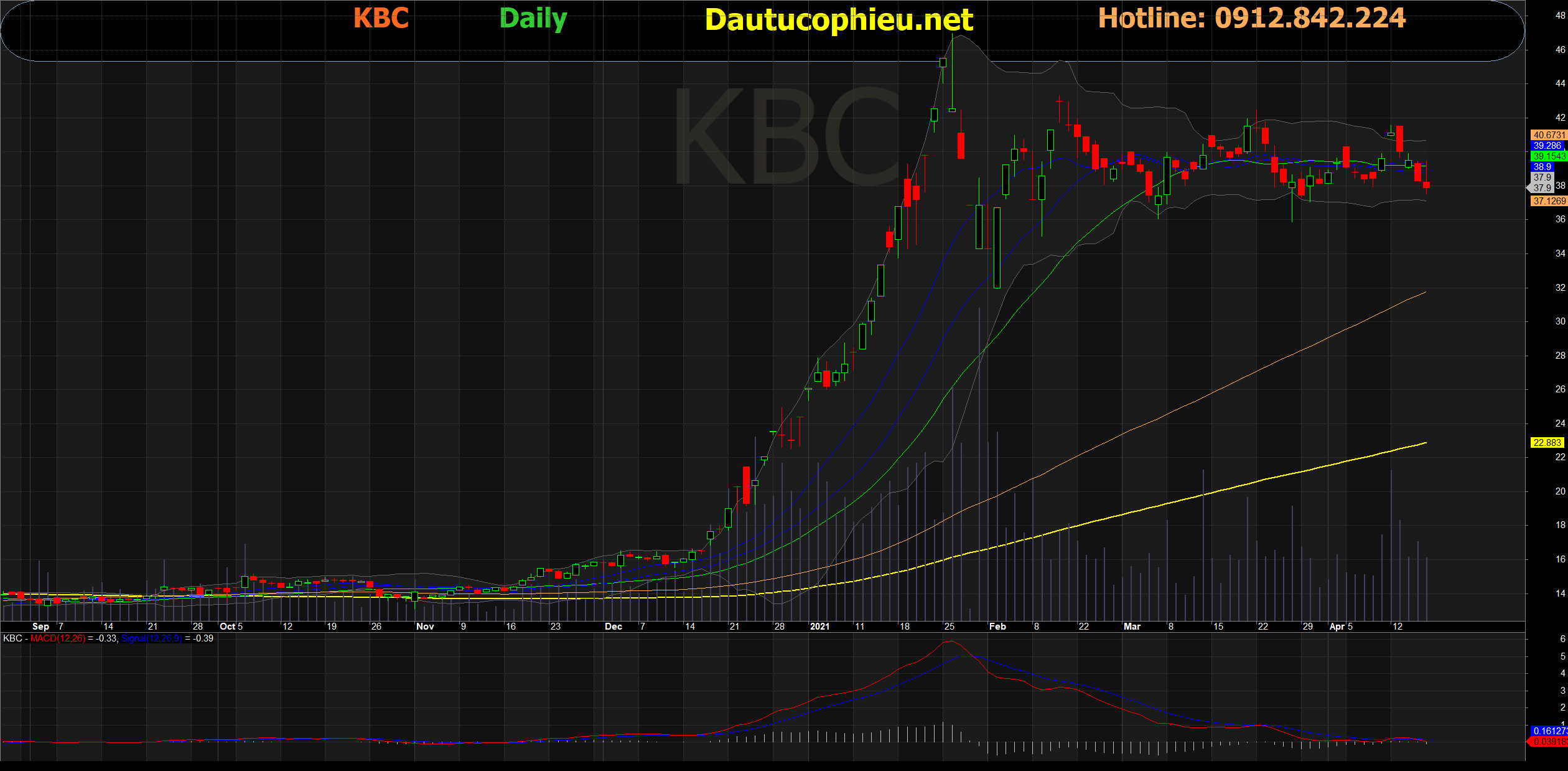 Đồ thị cổ phiếu KBC phiên giao dịch ngày 16/04/2021. Nguồn: AmiBroker