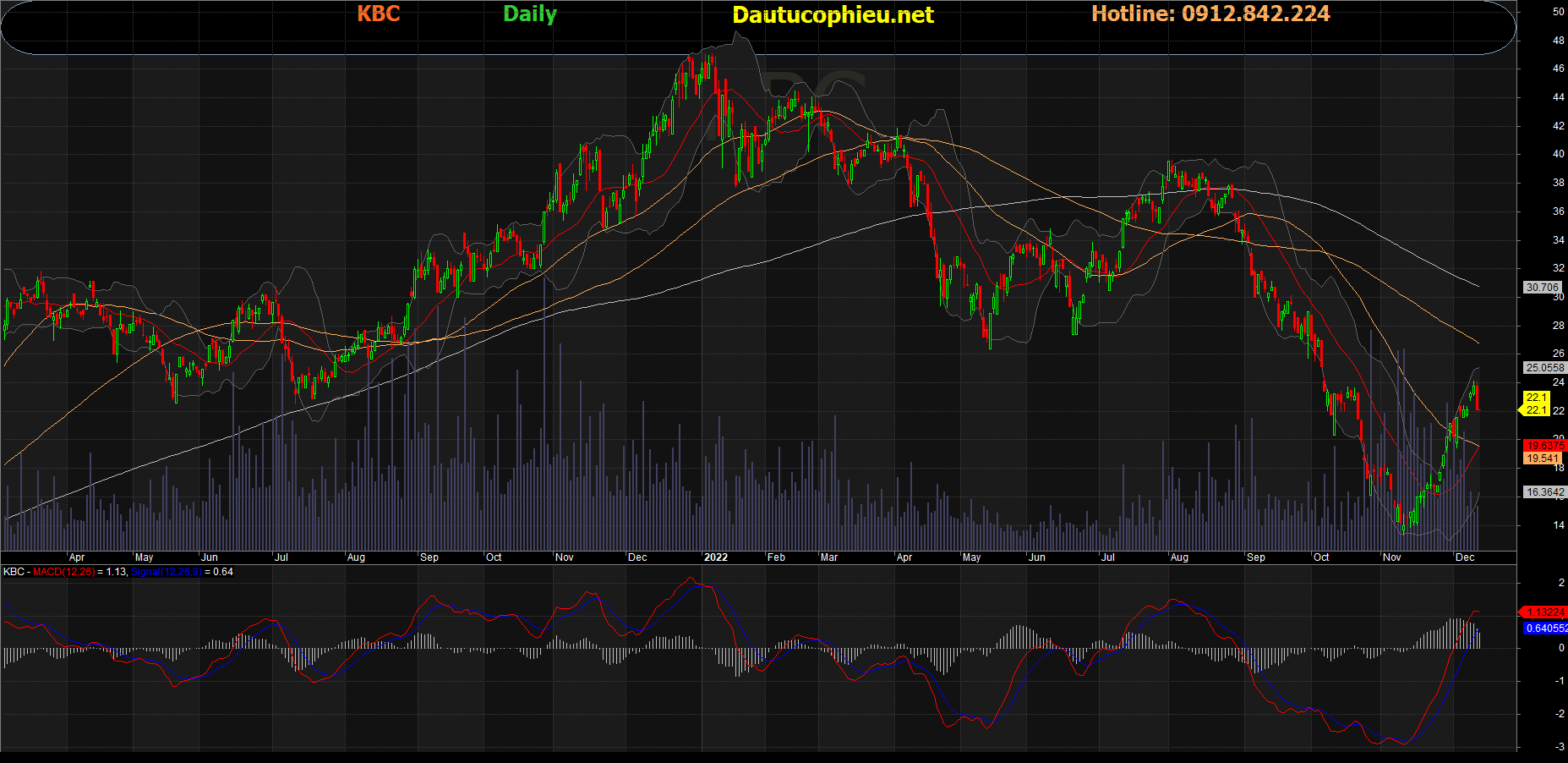 Đồ thị cổ phiếu KBC phiên giao dịch ngày 13/12/2022. Nguồn: AmiBroker