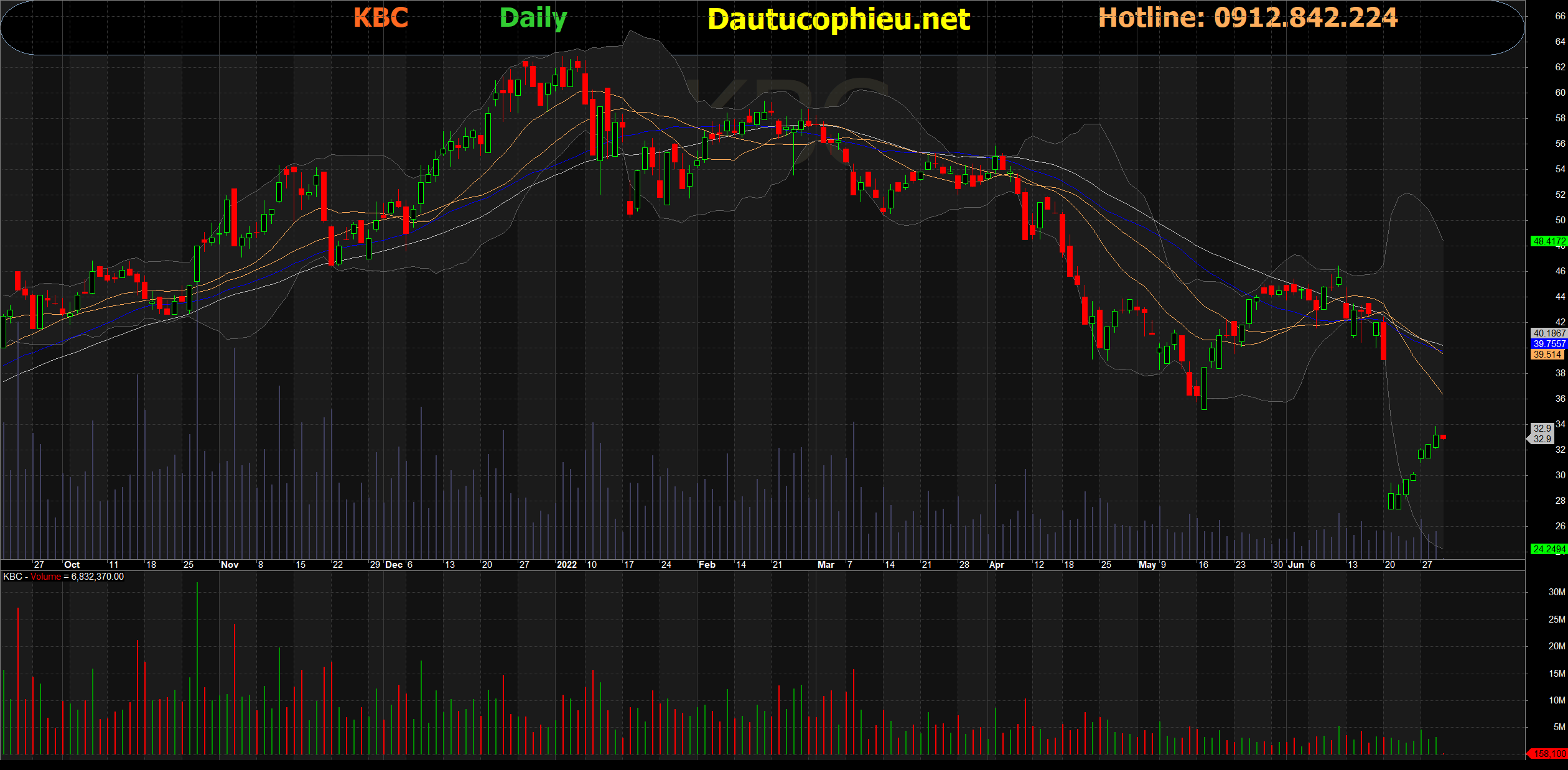 Đồ thị cổ phiếu KBC phiên giao dịch ngày 30/06/2022. Nguồn: AmiBroker