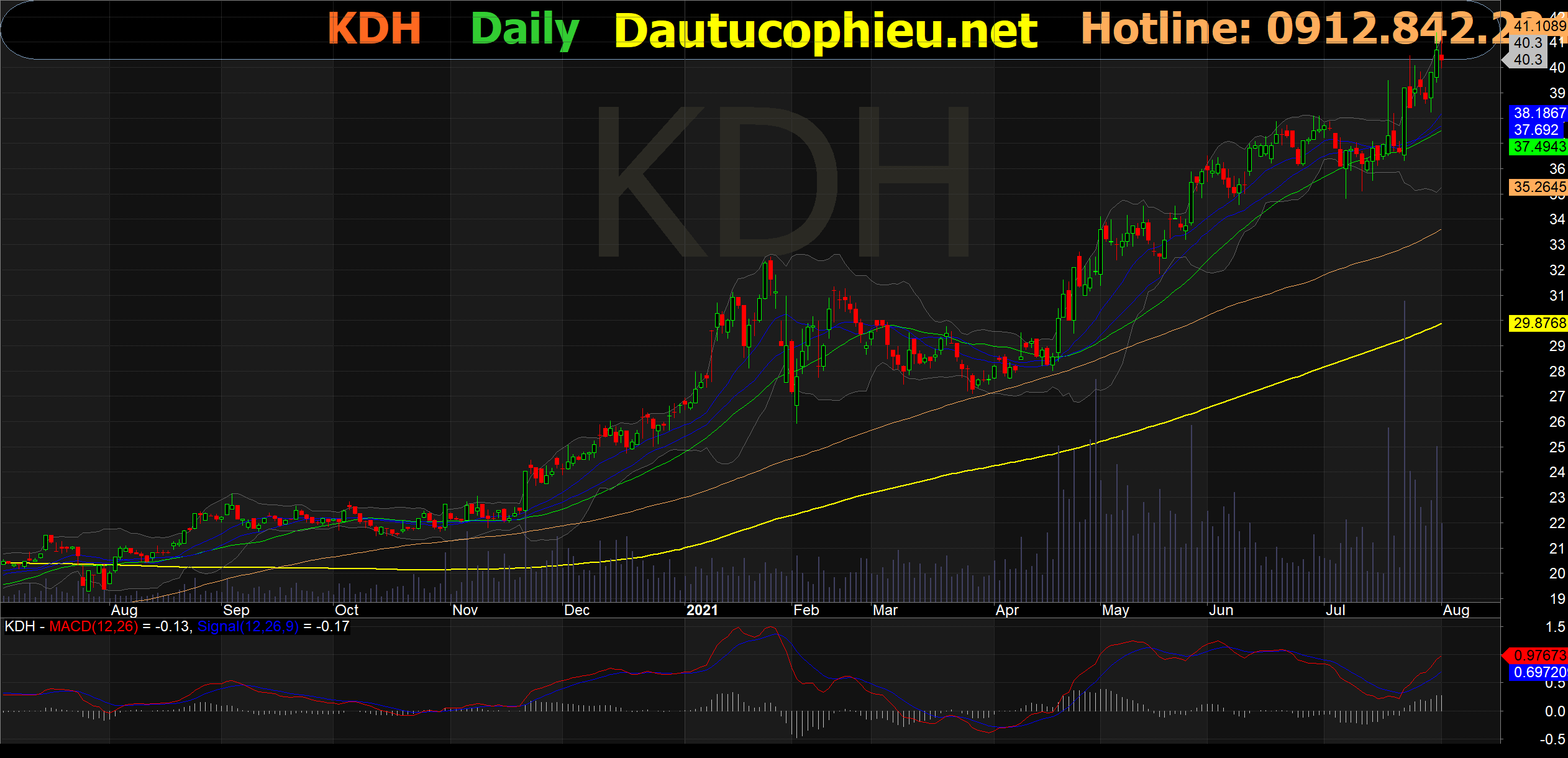 Đồ thị cổ phiếu KDH phiên giao dịch ngày 02/08/2021. Nguồn: AmiBroker