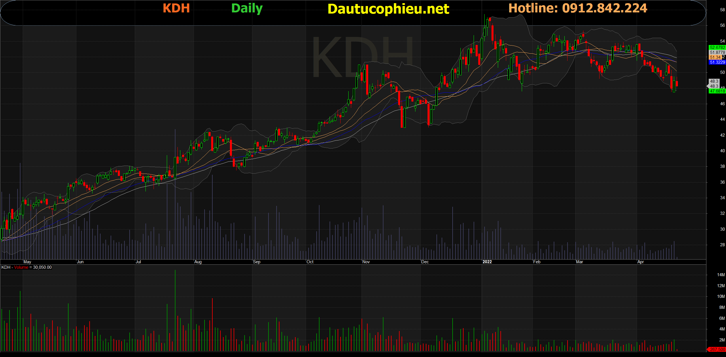 Đồ thị cổ phiếu KDH phiên giao dịch ngày 25/04/2022. Nguồn: AmiBroker