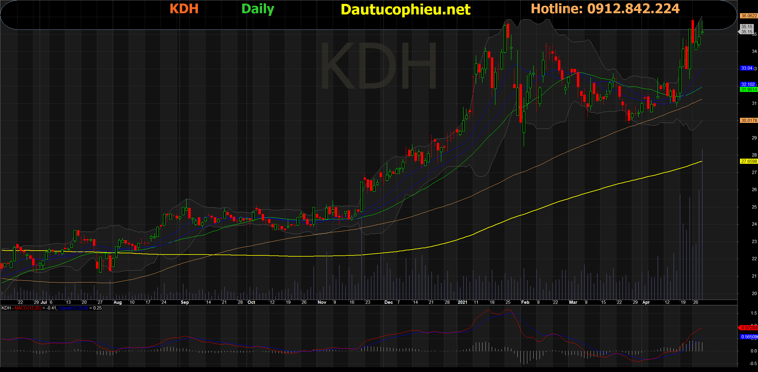 Đồ thị cổ phiếu KDH phiên giao dịch ngày 29/04/2021. Nguồn: AmiBroker