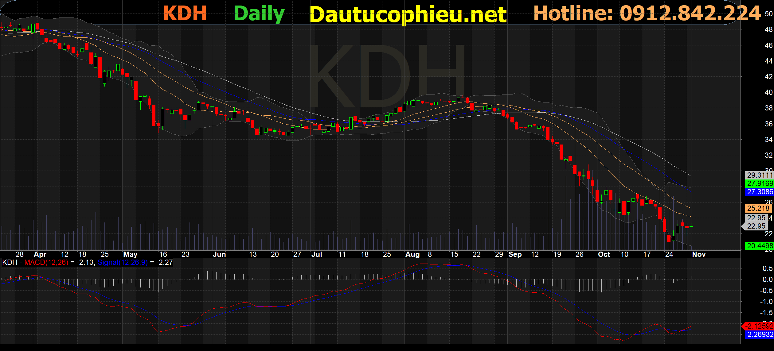 Đồ thị cổ phiếu KDH phiên giao dịch ngày 01/11/2022. Nguồn: AmiBroker