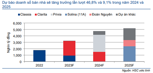 Chúng tôi giữ nguyên dự báo trong năm 2024 với lợi nhuận thuần tăng trưởng 56,0% đạt 1,7 nghìn tỷ đồng và doanh thu đạt 4,8 nghìn tỷ đồng, tăng trưởng 45,9%. Công ty chủ yếu sẽ ghi nhận các sản phẩm bàn giao từ dự án cao tầng Privia và các sản phẩm còn lại tại dự án Clarita.