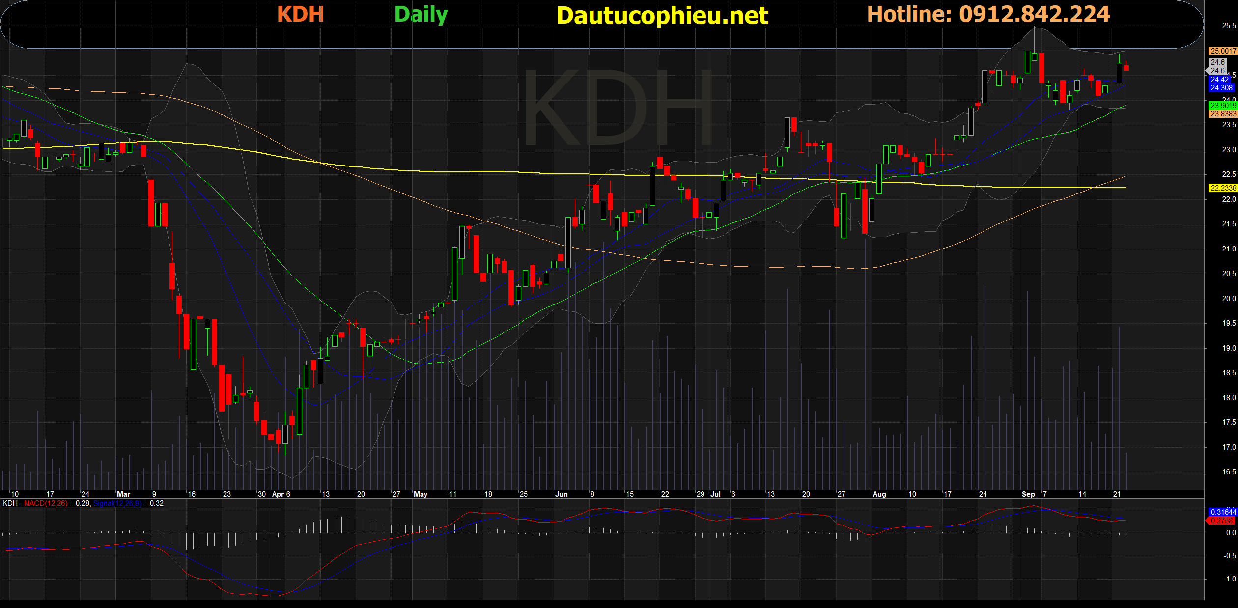 Đồ thj cổ phiếu KDH phiên giao dịch ngày 23/09/2020. Nguồn AmiBroker