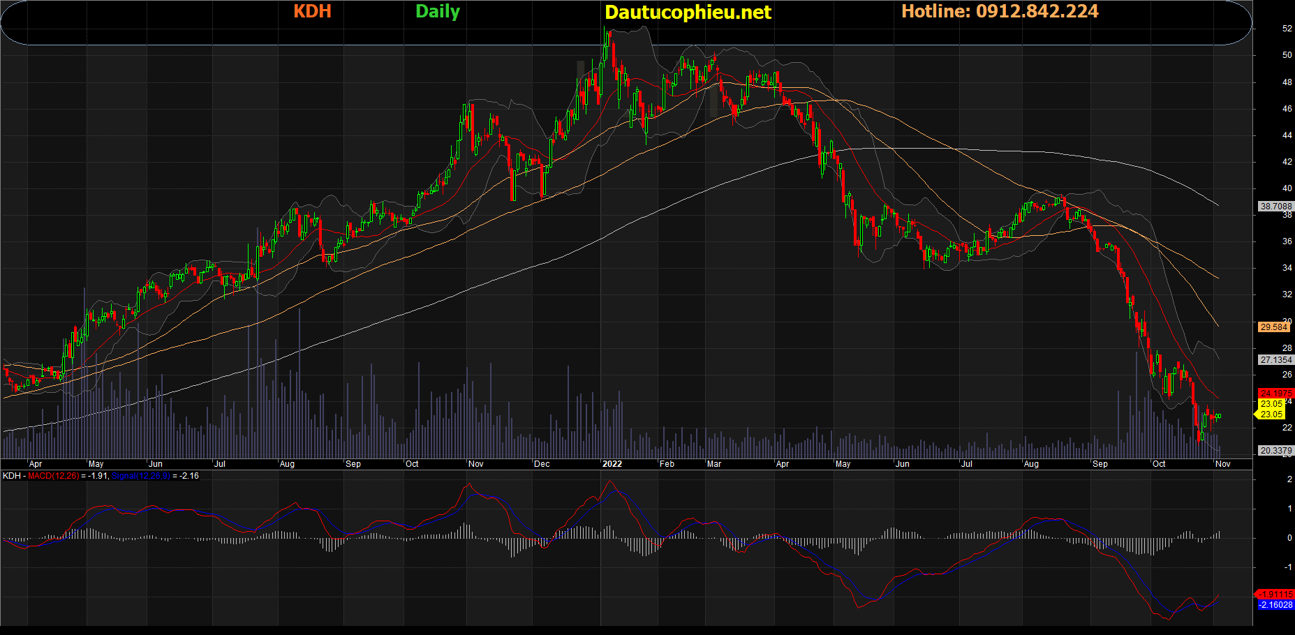 Đồ thị cổ phiếu KDH phiên giao dịch ngày 03/11/2022. Nguồn: AmiBroker