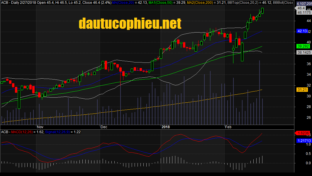 Đồ thị cổ phiếu KDH phiên giao dịch ngày 27/02/2018. Nguồn: AmiBroker