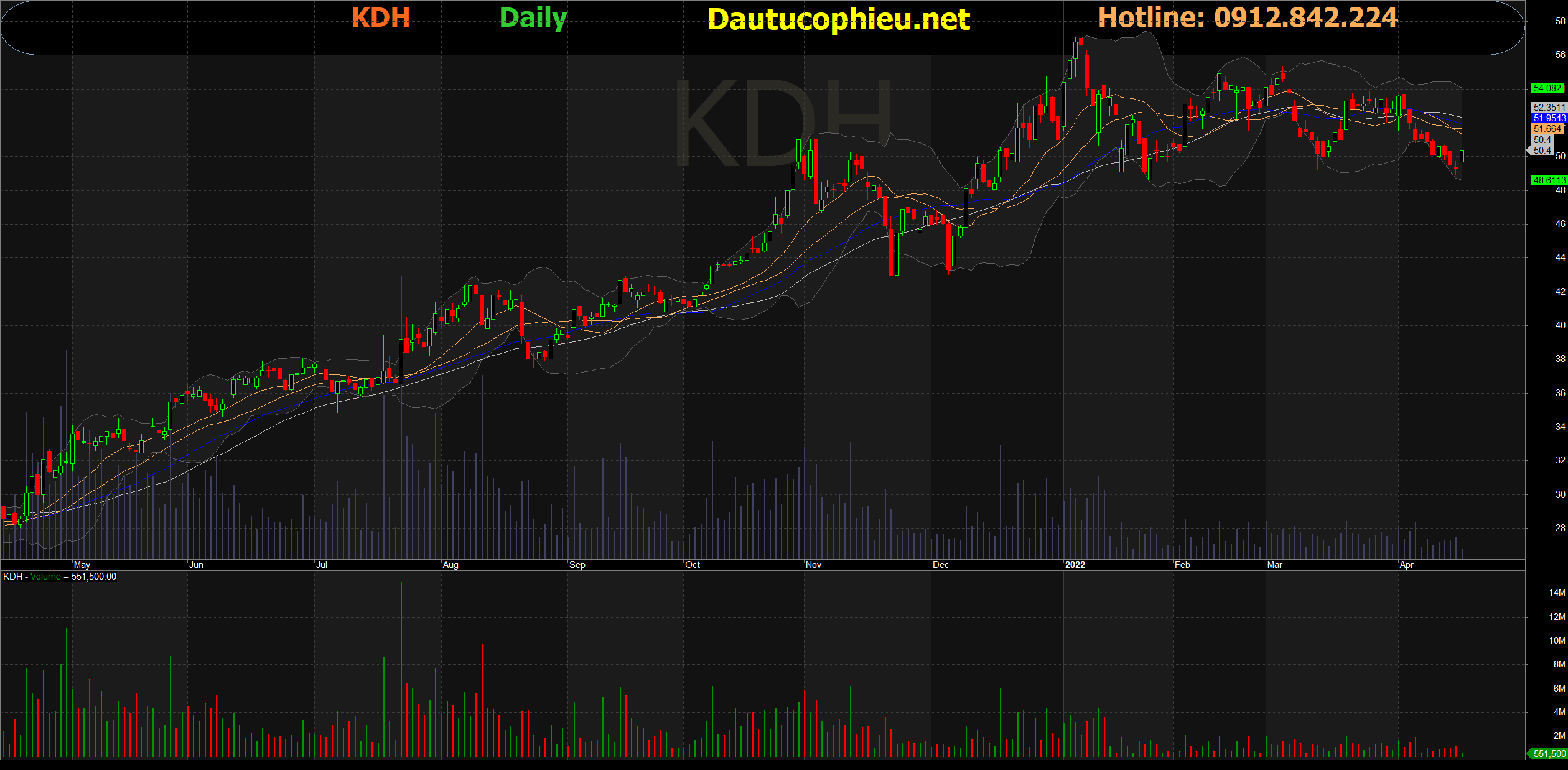 Đồ thị cổ phiếu KDH phiên giao dịch ngày 19/04/2022. Nguồn: AmiBroker