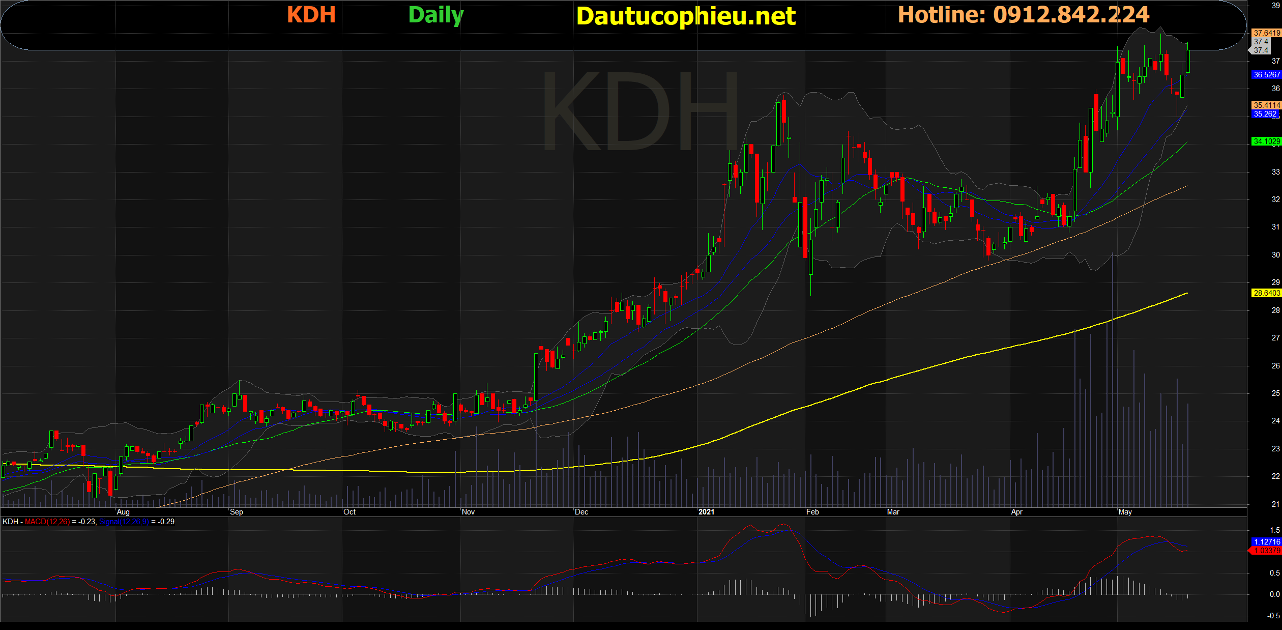 Đồ thị cổ phiếu KDH phiên giao dịch ngày 21/05/2021. Nguồn: AmiBroker