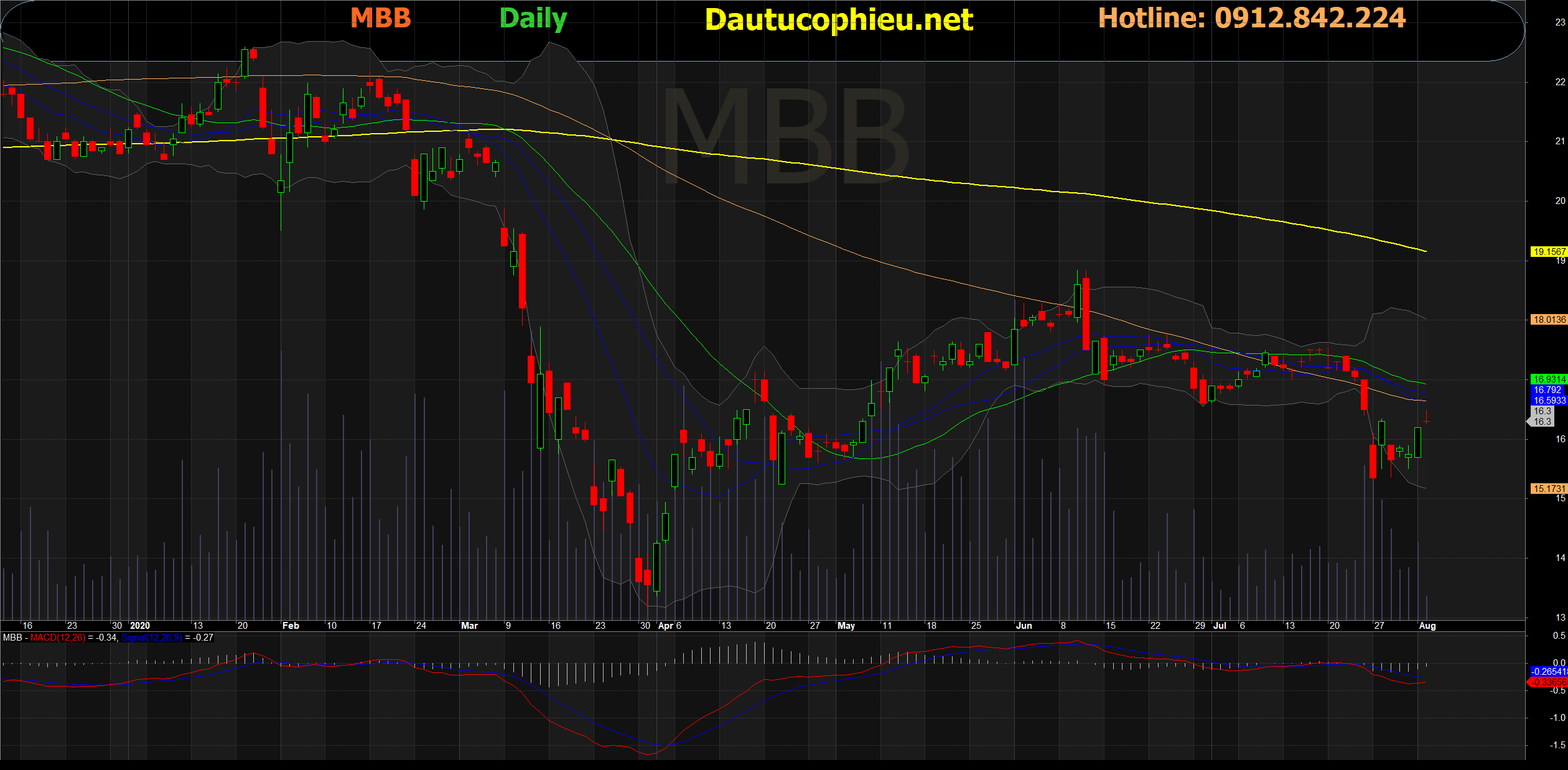 Đồ thị cổ phiếu MBB phiên giao dịch ngày 04/08/2020. Nguồn: AmiBroker