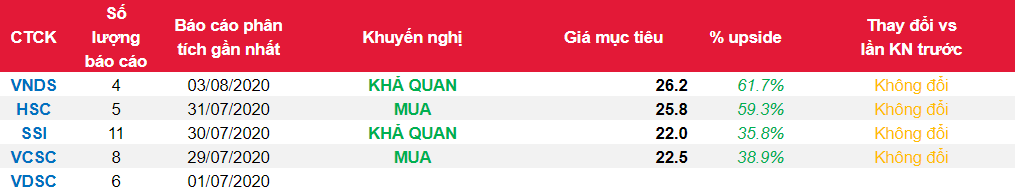 - Cổ phiếu MBB ghi nhận tổng thu nhập 4.264 tỷ đồng trong Q2/2020 (+7% svck), với thu nhập lãi thuần tăng 5% và thu nhập ngoài lãi tăng trưởng 11% sv cùng kỳ. Dư nợ cho vay tăng 9% sv cùng kỳ do nhu cầu tín dụng suy giảm, thấp hơn mức tăng trưởng 17% sv cùng kỳ tại Q2/2019. Tuy nhiên, chi phí dự phòng giảm 13% sv cùng kỳ khiến lợi nhuận ròng Q2/2020 tăng 18% sv cùng kỳ lên 2.263 tỷ đồng.