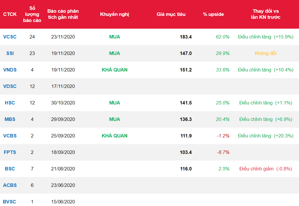 - Chúng tôi nâng giá mục tiêu thêm 15% nhưng điều chỉnh khuyến nghị từ MUA thành KHẢ QUAN cho Ngân hàng TMCP Quân đội (Cổ phiếu MBB) khi giá cổ phiếu đã phục hồi 37% trong 3 tháng qua. Mức tăng giá mục tiêu của chúng tôi do (1) cập nhật mô hình định giá đến cuối 2021, (2) giảm giá định chi phí vốn và (3) nâng dự báo tổng thu nhập trong giai đoạn 2020-2024 thêm 2% so với dự báo trước đây.