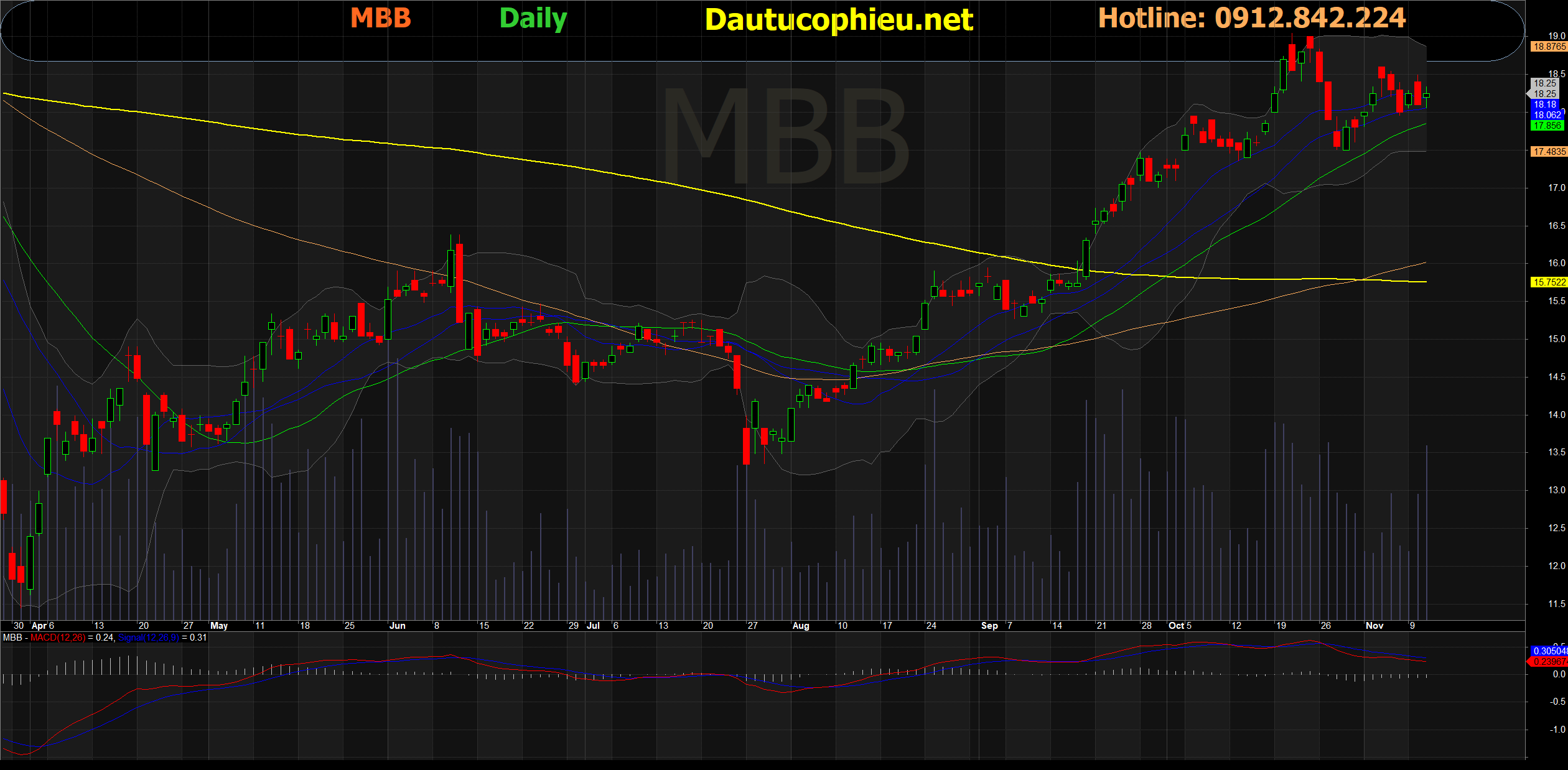 Đồ thị cổ phiếu MBB phiên giao dịch ngày 11/11/2020. Nguồn: AmiBroker