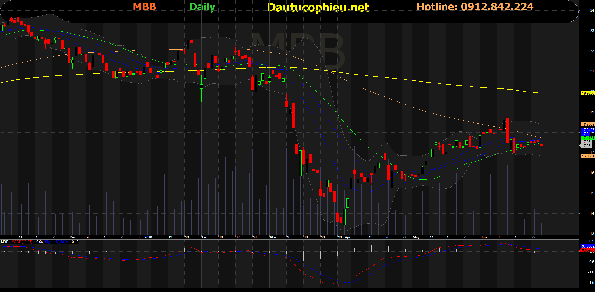 Đồ thị cổ phiếu MBB phiên giao dịch ngày 25/06/2020. Nguồn: AmiBroker