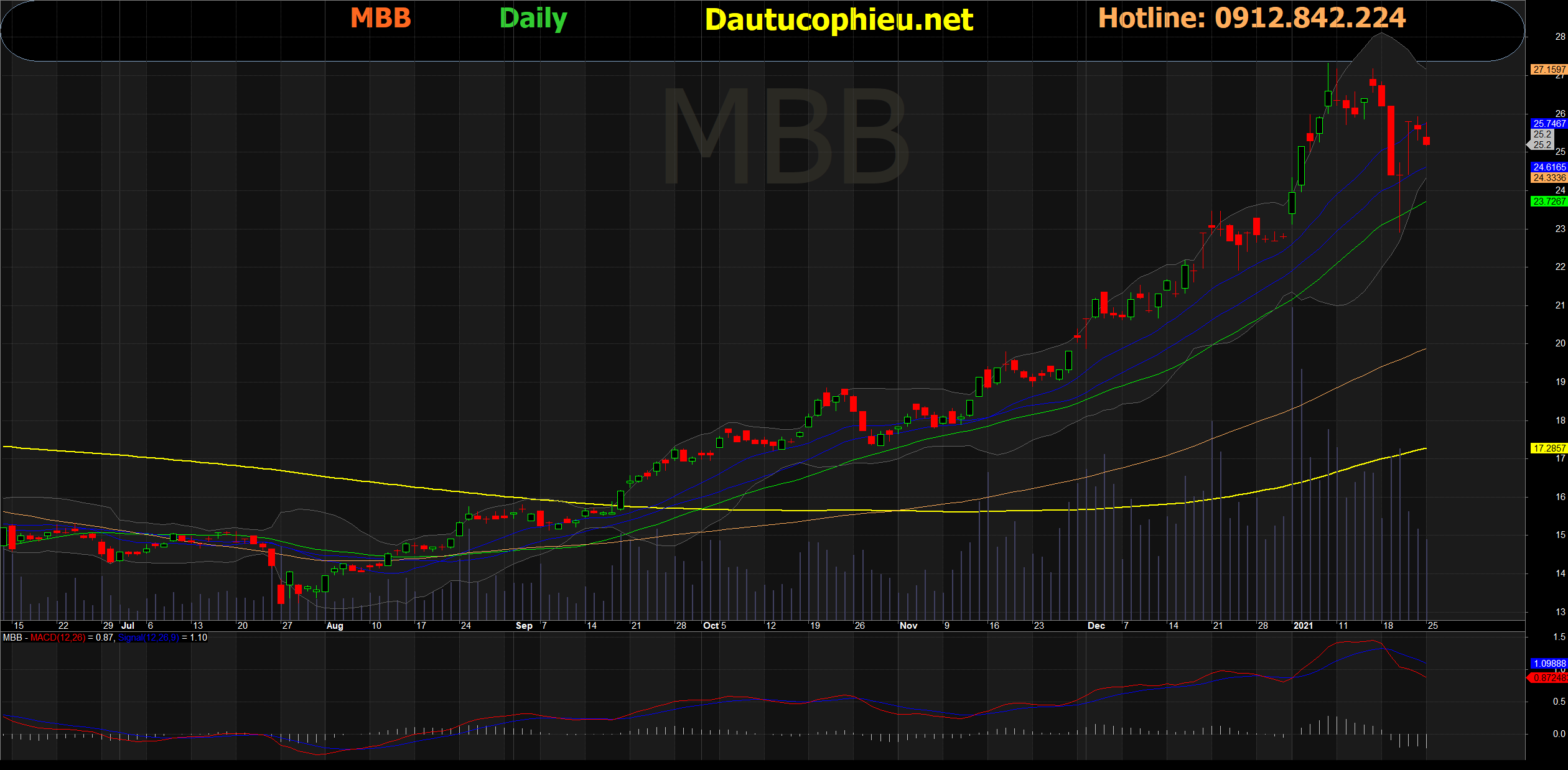 Đồ thị cổ phiếu MBB phiên giao dịch ngày 25/01/2021. Nguồn: AmiBroker