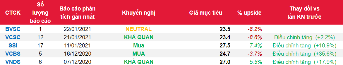 - Chúng tôi ưa thích cổ phiếu MBB do MBB là ngân hàng hàng đầu, cung cấp giải pháp tài chính toàn diện, có chất lượng tài sản tốt, hiệu quả hoạt động cao và có tốc độ tăng trưởng tương đối tốt trong nhiều năm qua. Tuy nhiên, cổ phiếu MBB hiện đang giao dịch với mức định giá P/B cao hơn tương đối so với mức P/B trung bình lịch sử. Do đó, BVSC duy trì khuyến nghị NEUTRAL với mức giá mục tiêu là 23.500 VND/CP (thấp hơn 8,9% so mức giá đóng cửa tại ngày 21/01/2021 là 25.800 VND/CP).