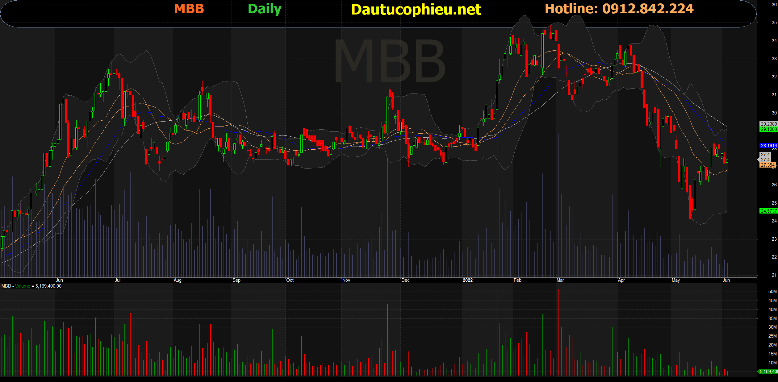 Đồ thị cổ phiếu MBB phiên giao dịch ngày 03/05/2022. Nguồn: AmiBroker