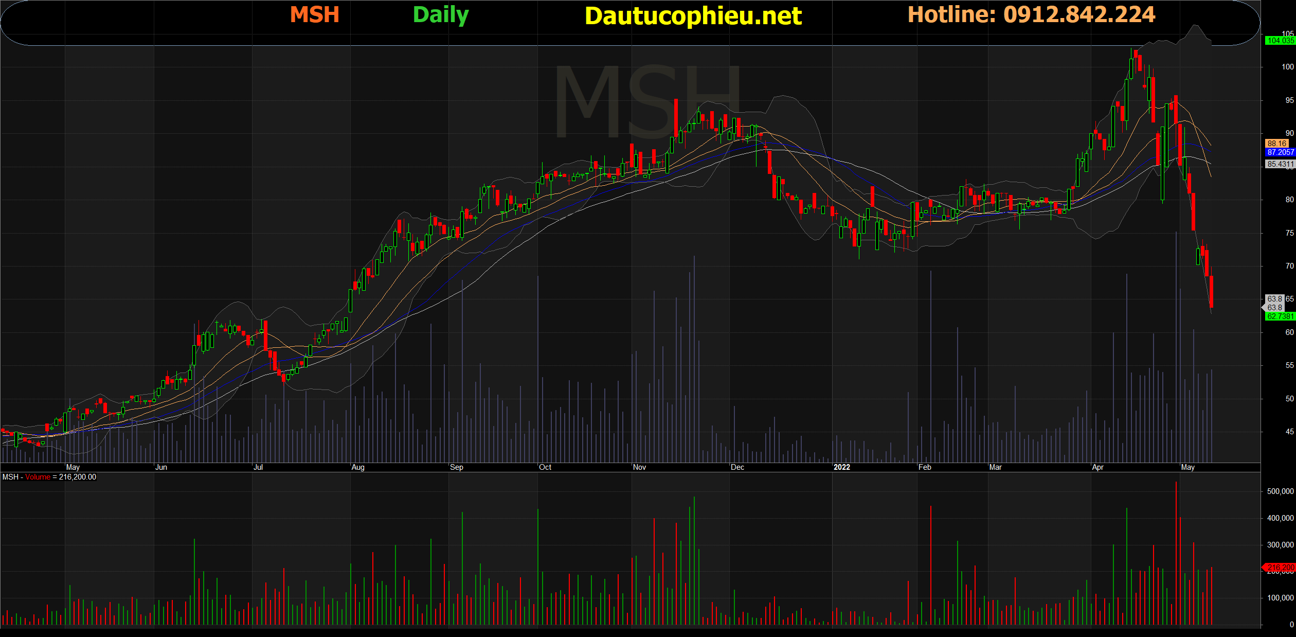 Đồ thị cổ phiếu MSH phiên giao dịch ngày 13/05/2022. Nguồn: AmiBroker