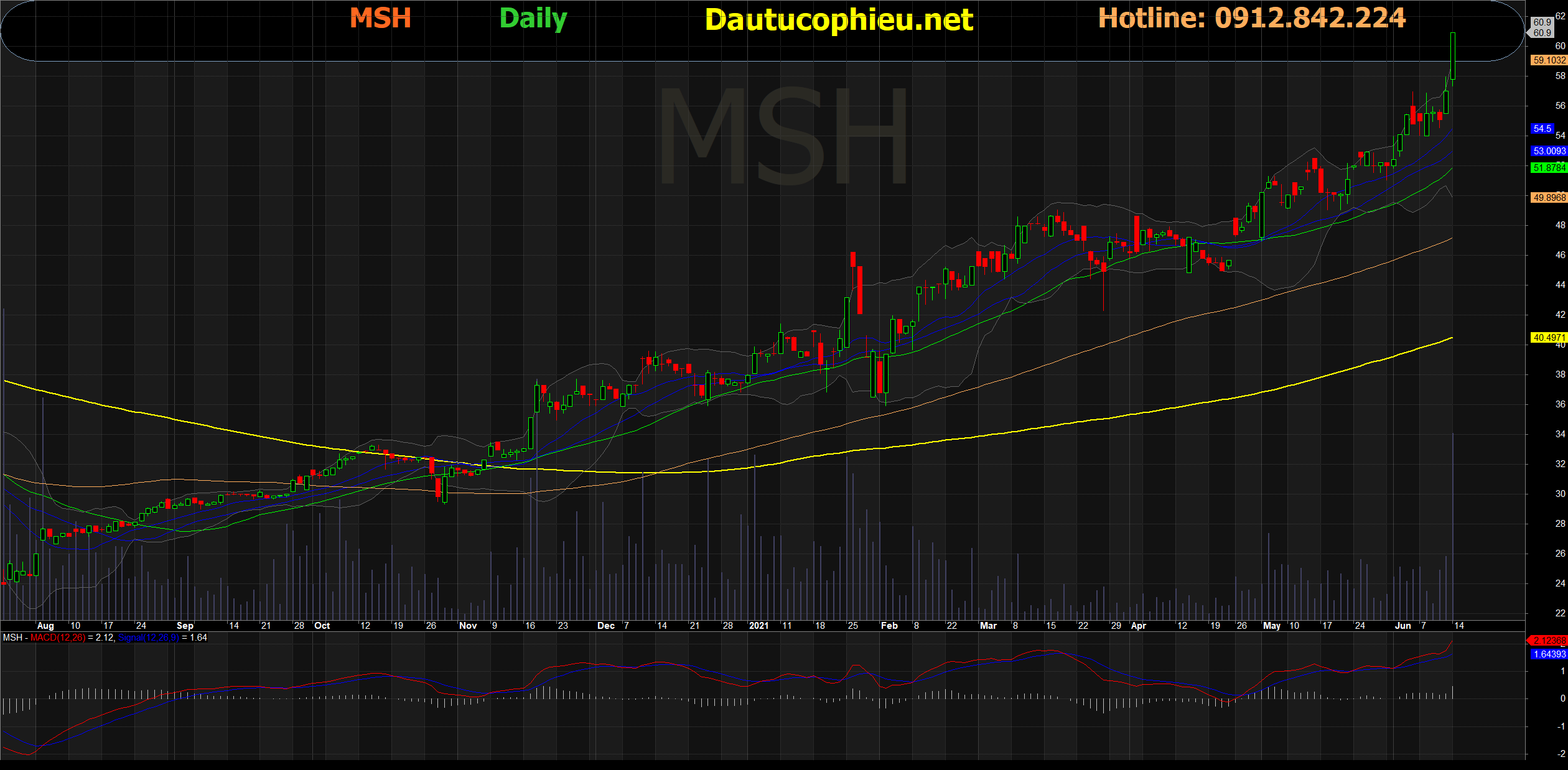 Đồ thị cổ phiếu MSH phiên giao dịch ngày 14/06/2021. Nguồn: AmiBroker