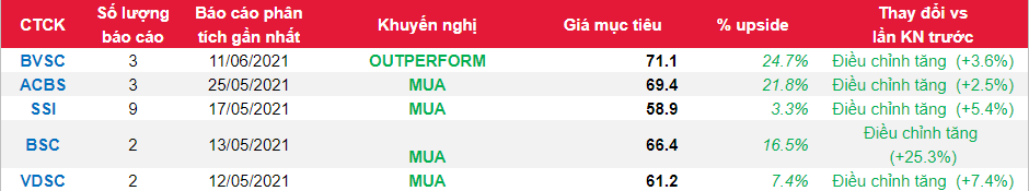 - BVSC dự báo LNST-CĐTS 2021 hồi phục về mức trước dịch, đạt 469 tỷ VNĐ (+102% yoy), tươn đương EPS sau khen thưởng phúc lợi là 9.117 VNĐ/CP. Dự phóng trên bao gồm ước tính hoàn nhập dự phòng phải thu khách hàng 16 tỷ VNĐ.
